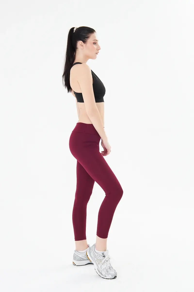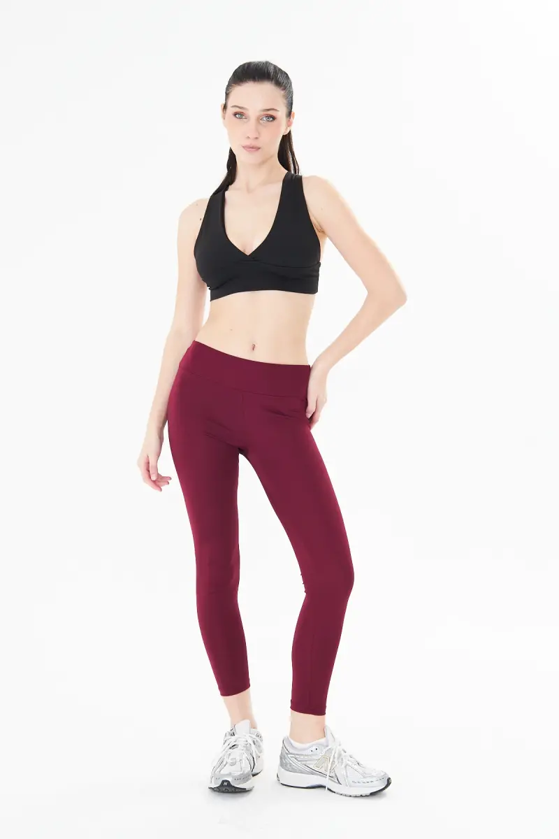 Kadın Toparlayıcı Yüksek Bel Bordo Tayt-Bordo