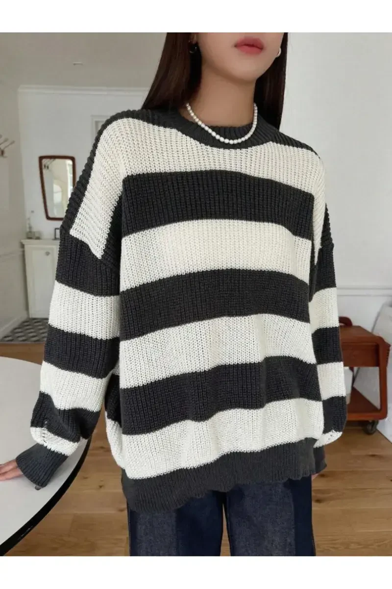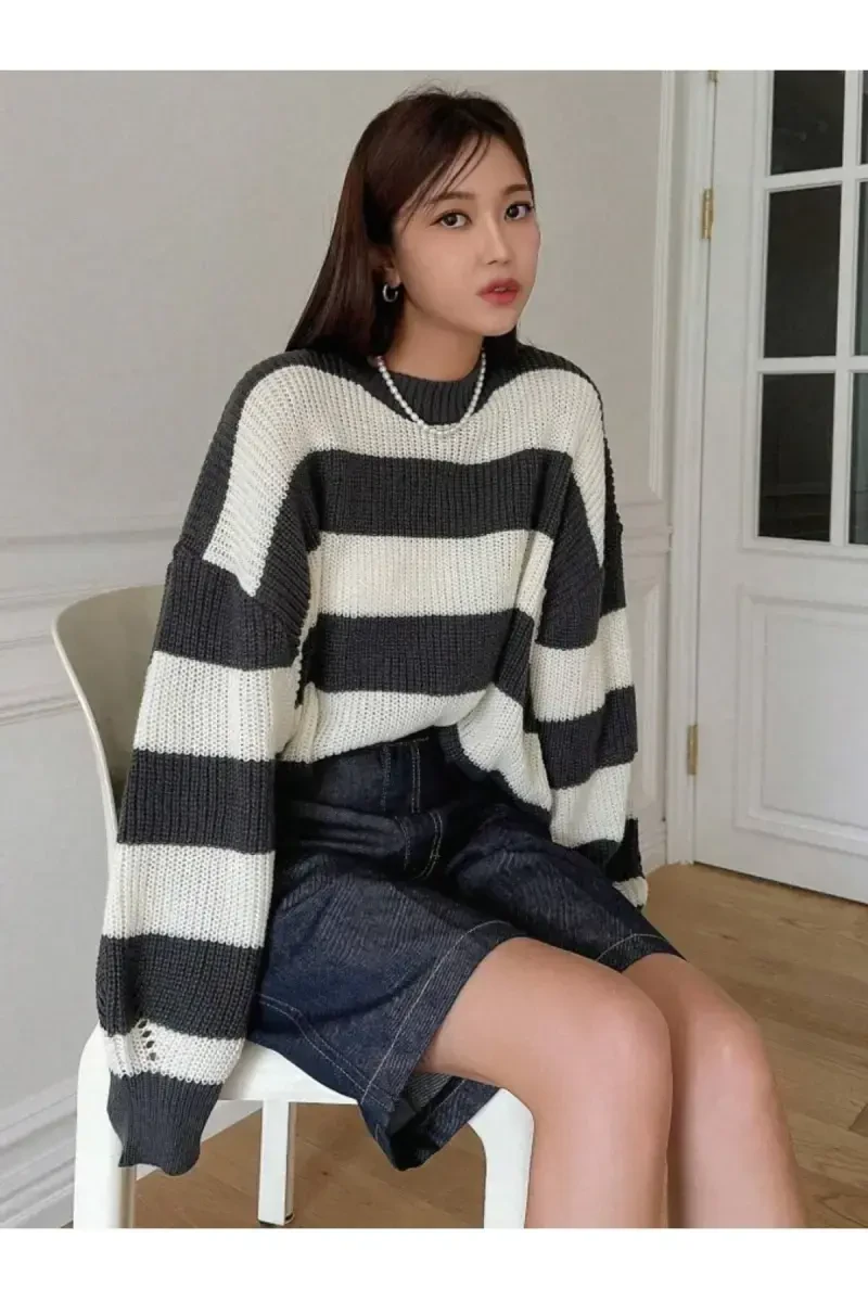 Offered by DIER MODA, the Women's Knitted Striped Sweater-Anthracite, which appeals to all age groups, is a candidate to be an indispensable part of your wardrobe with its timeless design and basic silhouette. It offers comfortable use throughout the day with its soft texture thanks to its thick structure that keeps you warm in cold weather and 100% acrylic material. It can be easily worn without a belt and maintains its stylish appearance. The Thessaloniki weaving type adds a rich touch to the sweater while increasing its durability. The pocketless design creates a modern line, while the unprinted pattern makes it easy to combine with different bottom wear options. This sweater, which does not restrict your freedom of movement with its colorful details and standard sleeve cut, is a piece that you can easily prefer in casual/daily environments. The fact that it is a local production of Turkish origin is an indication that quality materials are used. This knitted sweater is not just a piece of clothing, but also a way to express your style. It will integrate with your cool & comfort personality and make you stand out in every environment you enter. Ideal for women with a minimalist style, this one-piece set content offers simplicity and elegance together. It is a practical and stylish option that puts an end to the worry of what to wear every day. Free returns are available within 15 days. This sweater is a perfect choice for all women who want to combine elegance and comfort. It will be an indispensable part of your daily routine and will help you reflect your style at all times. It is in stock in limited numbers to be sold at a campaign price, don't miss this opportunity!