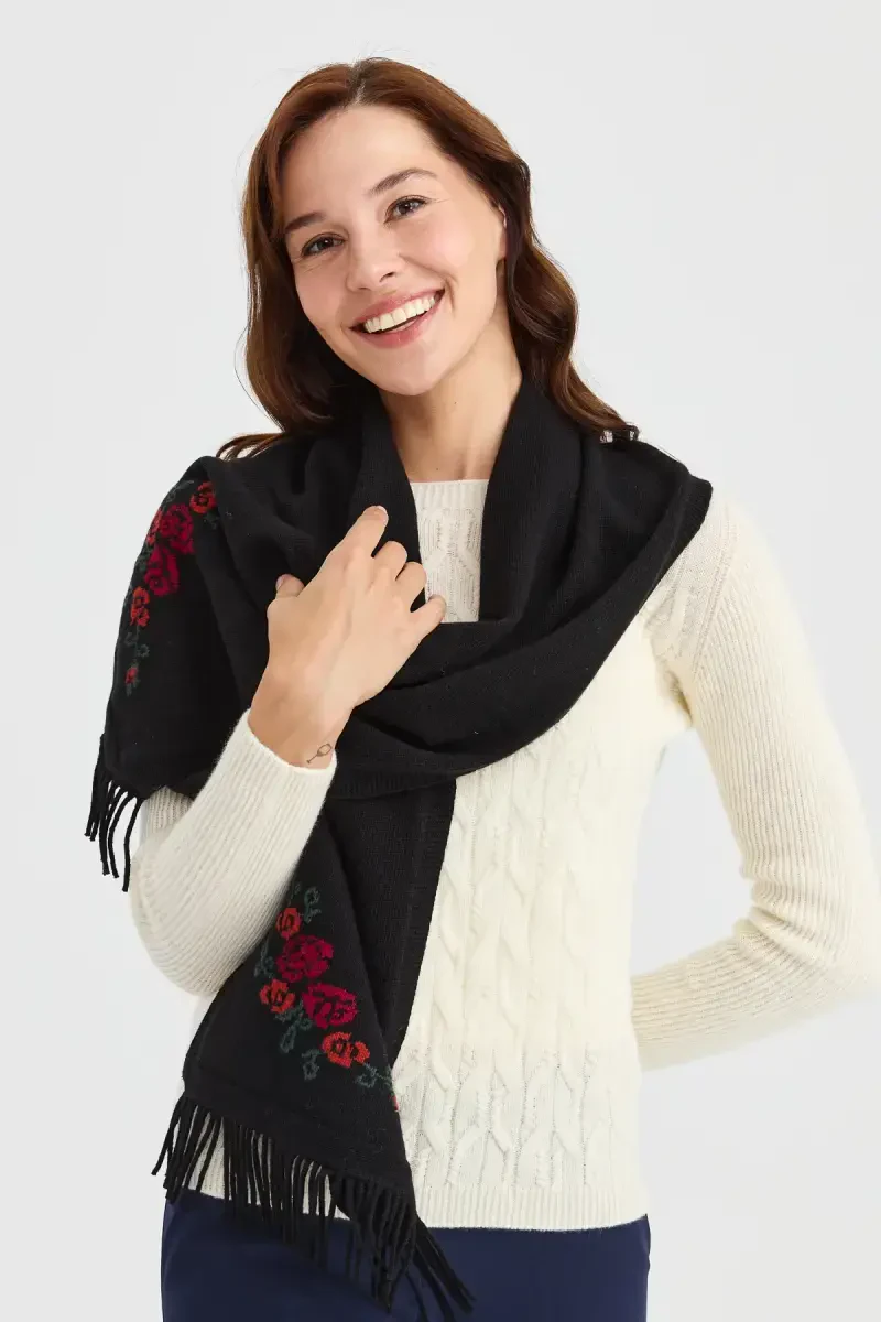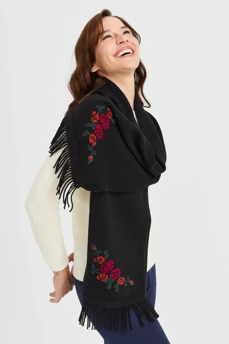 Yün aralash triko to‘quv matodan ishlab chiqarilgan. Chetlari gullidir. Yumshoq tuzilishi tufayli foydalanish vaqtida qulaylik ta’minlaydi. 30x180 sm o‘lchamda.