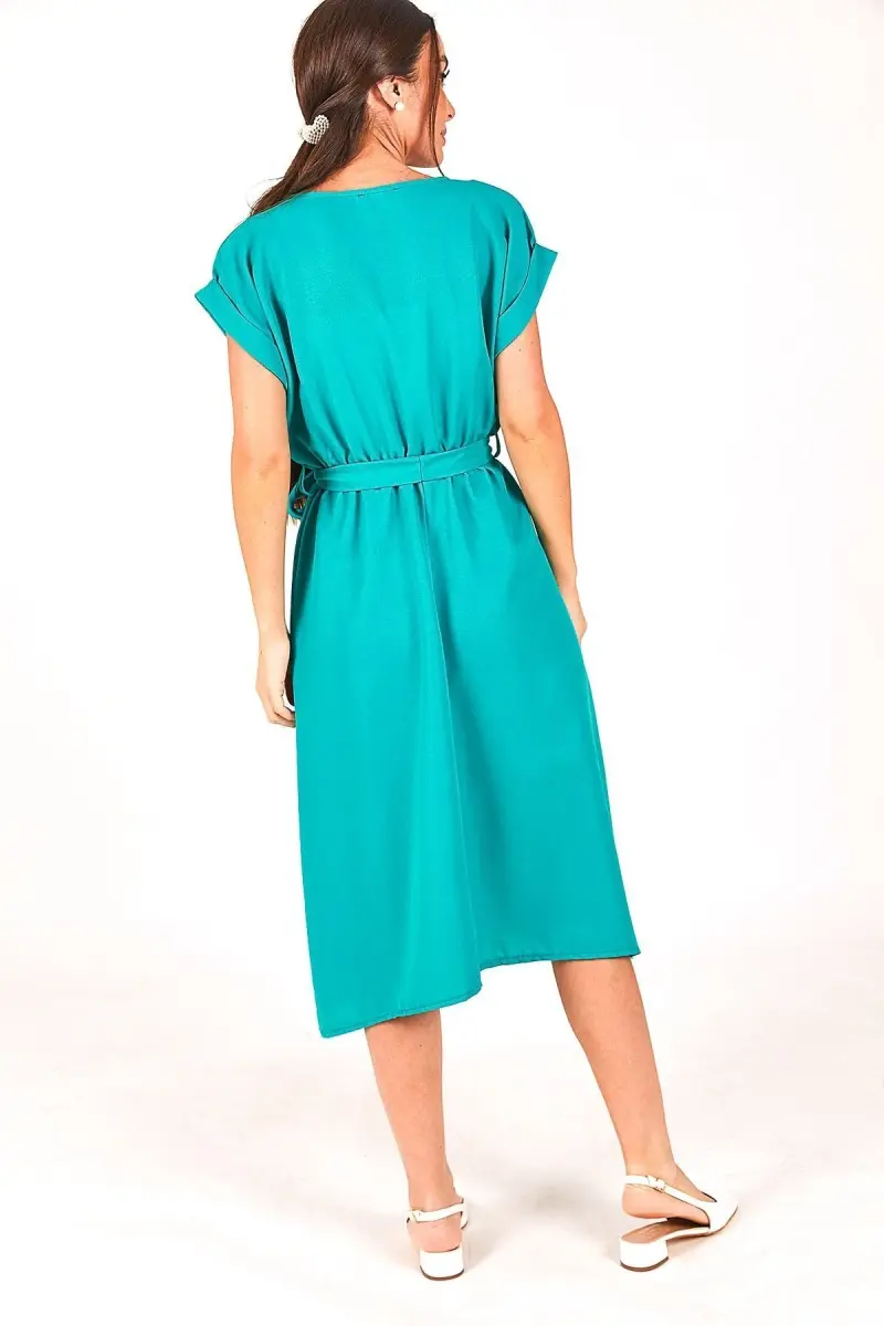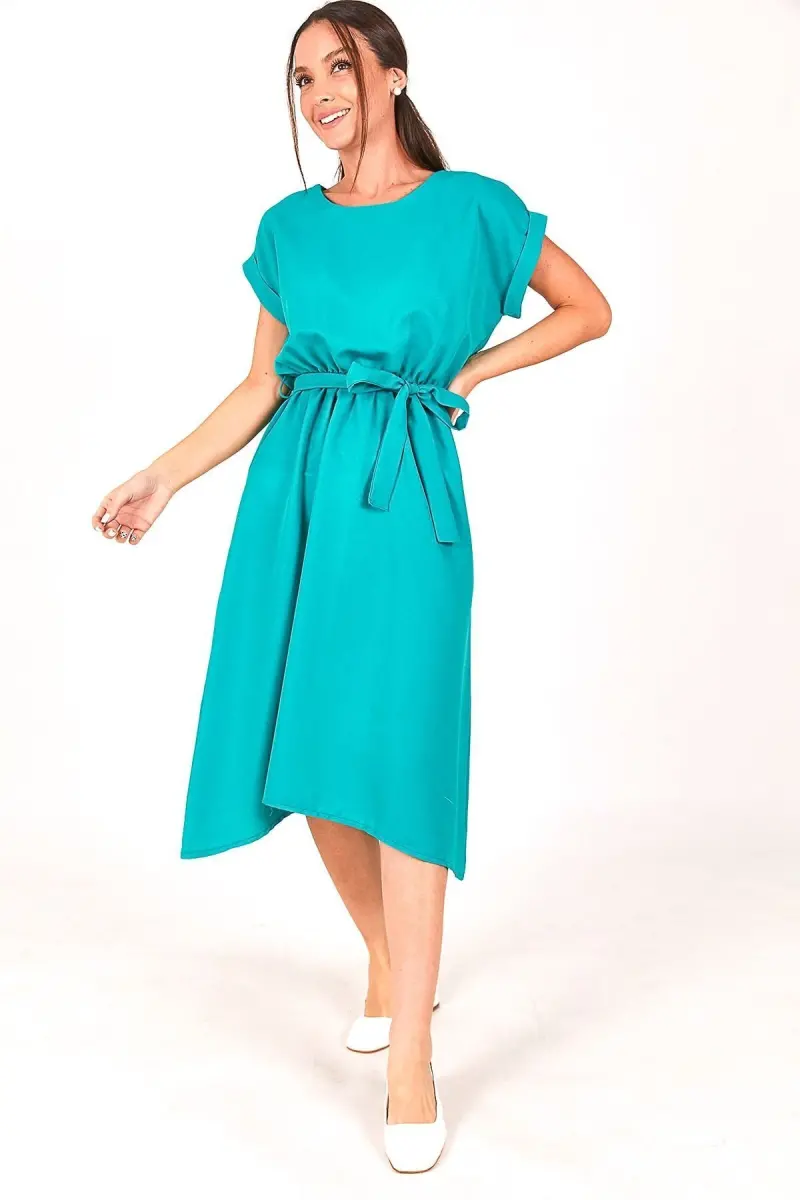 Kadın Turkuaz BELİ LASTİKLİ BAĞLAMALI ELBİSE ARM-18Y001120-Turkuaz