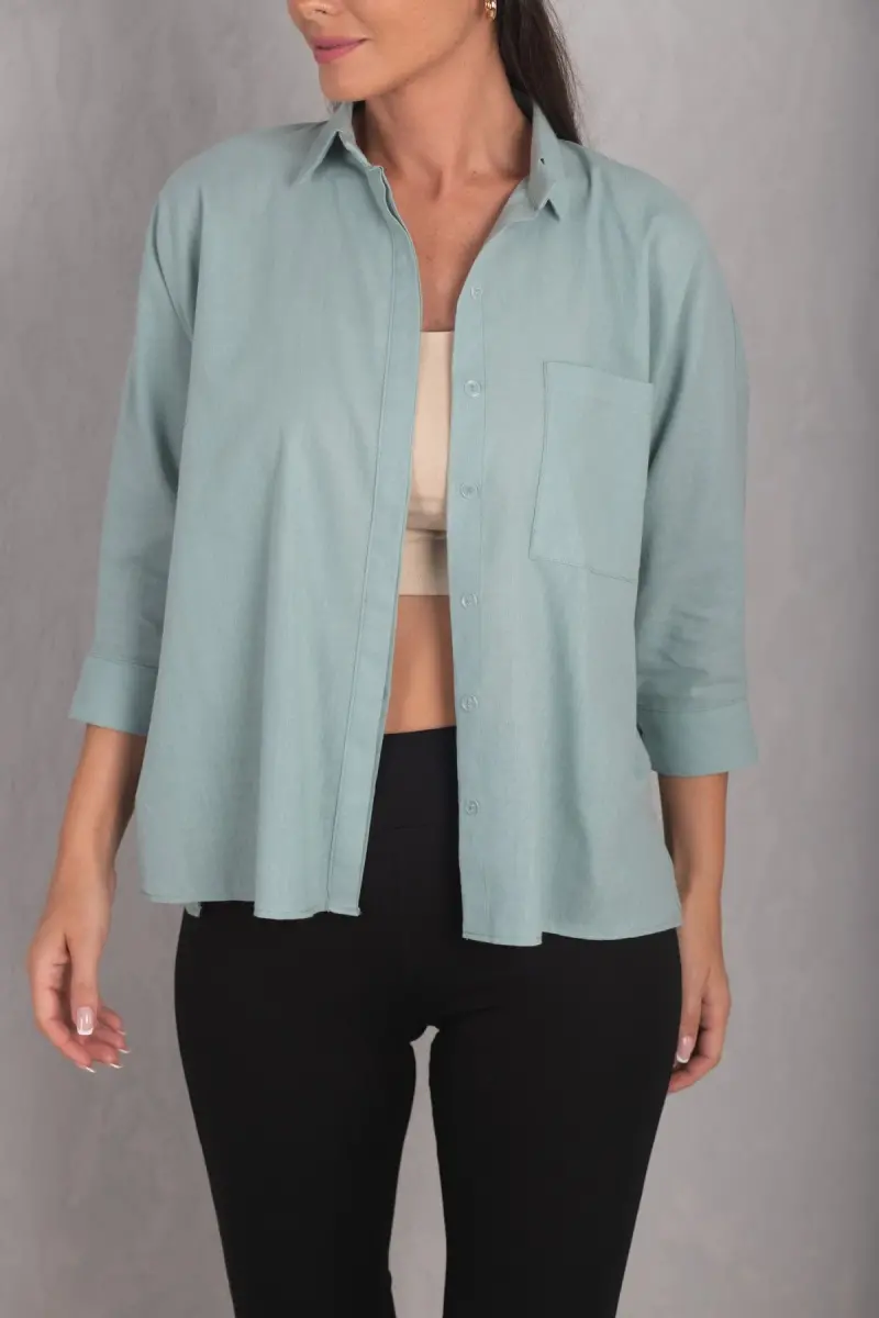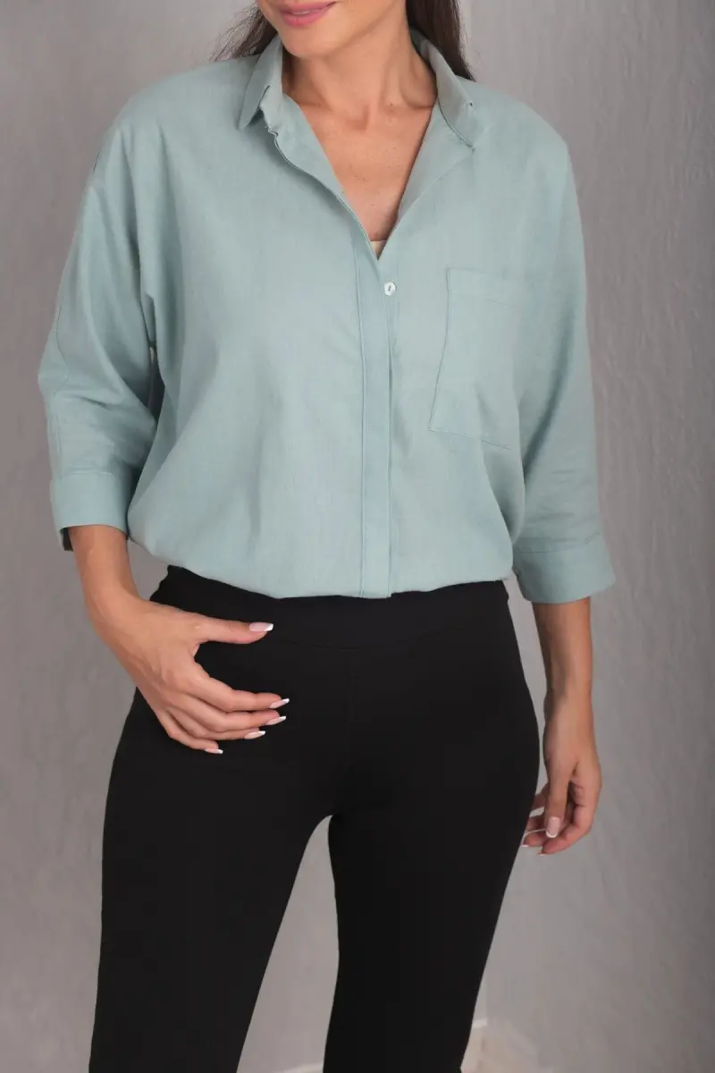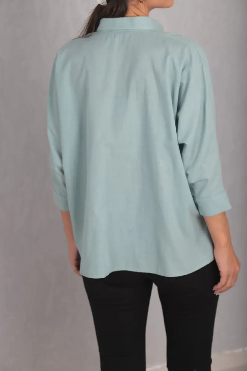 Kadın Turkuaz CEPLİ SALAŞ KETEN GÖMLEK ARM-21Y001035-Turkuaz