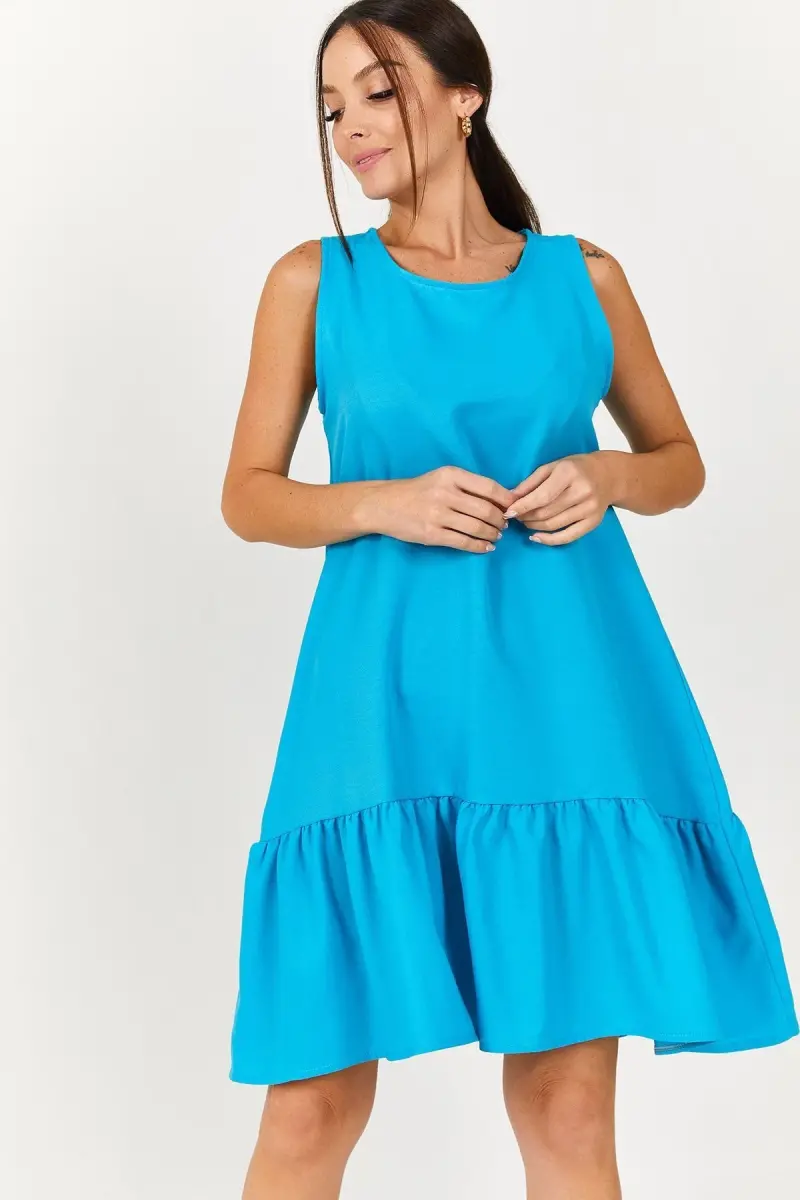 Kadın Turkuaz Kolsuz Eteği Fırfırlı Elbise ARM-18Y001156-Turkuaz