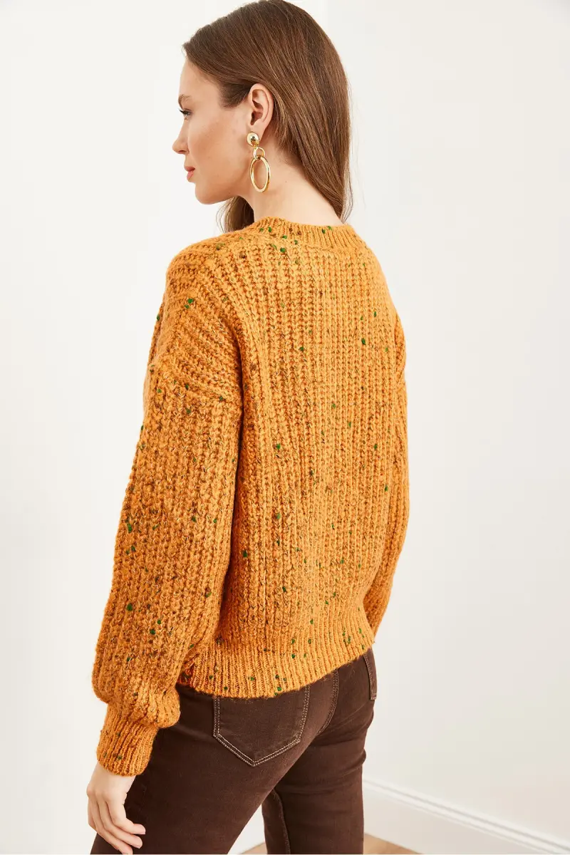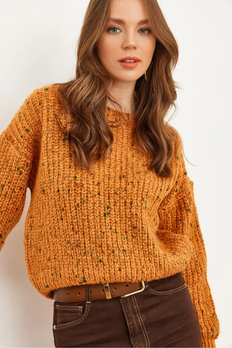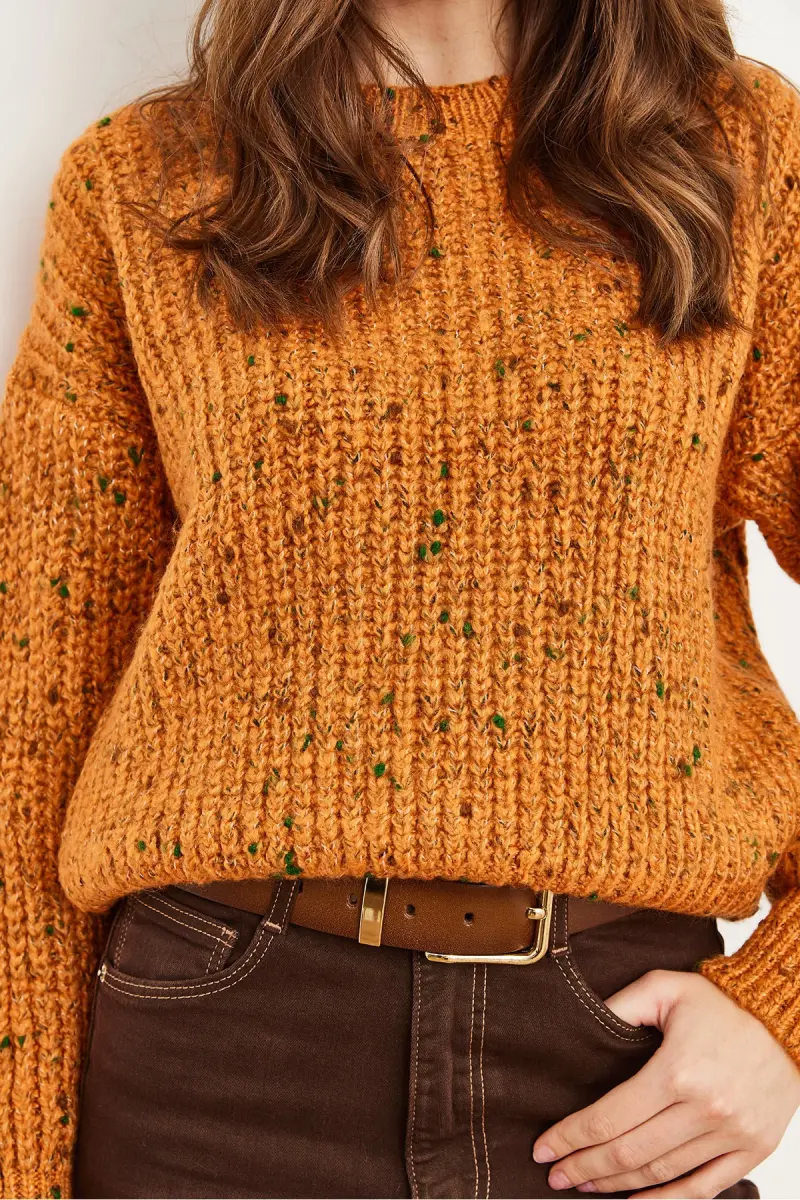Kadın Turuncu Renk Detaylı Yumuşak Detaylı Oversize Triko Kazak KZK-19000862-Turuncu