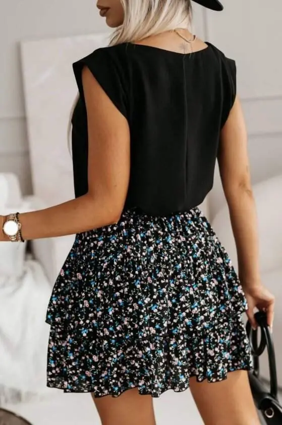 Kadın üst Sandy Kumaş Bluz, Alt çiçek Desenli Süprem Kumaş Etek Ikili Takım