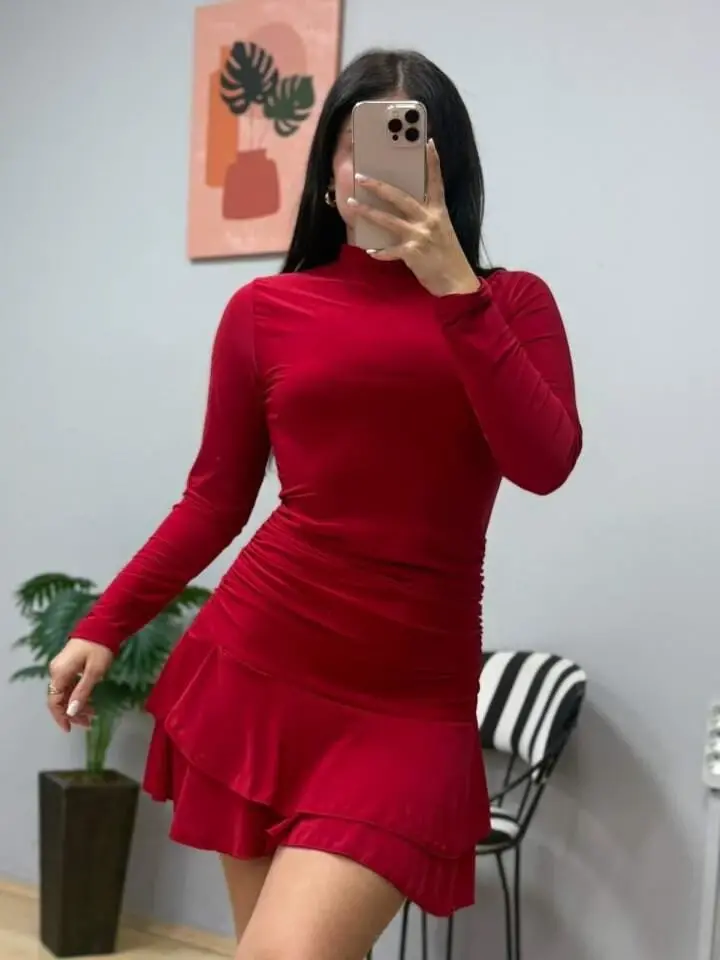 Kadın Uzun Kollu Balıkçı Yaka Mini Fırfırlı Sandy ElbiseModelin Ölçüleri: Boy: 165, Kg: 55, Göğüs: 90, Bel: 72, Kalça: 100Modelin üzerindeki ürün M/38 bedendirTARZ-DiğerleriYAKA-Balıkçı YakaDESEN-DiğerleriKOL UZUNLUK-Uzun KolUZUNLUK-MiniEK OZELLIKLER-Boş/Ek özellik YokKALIP-DigerTARZ-Diger