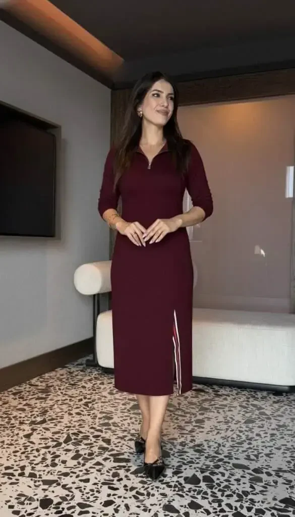 Şıklığı ve rahatlığı bir arada sunan Kadın Uzun Kollu Balıkçı Yaka Önden Fermuarlı Yırtmaçlı Midi Viskon İki İplik Elbise ile tanışın! Bu özel tasarım elbise, hem günlük kullanımda hem de özel davetlerde fark yaratmanızı sağlayacak. Viskonun yumuşak dokusu ve iki iplik kumaşın konforu sayesinde gün boyu rahat edeceksiniz. Midi boyu ve yırtmaç detayı, hareket özgürlüğünüzü kısıtlamadan zarif bir görünüm sunar.Balıkçı yaka tasarımı, soğuk havalarda sizi sıcak tutarken, önden fermuarlı oluşu elbiseyi kolayca giyip çıkarmanızı sağlar. Fermuar detayı aynı zamanda elbiseye modern ve dinamik bir hava katmaktadır. Uzun kollu tasarımı, her mevsim giyilebilmesine olanak tanır. İster tek başına, ister ceket veya hırka ile kombinleyerek farklı stiller yaratabilirsiniz.Bu elbise, her vücut tipine uyum sağlayacak şekilde tasarlanmıştır. Modelin üzerindeki M/38 beden, farklı beden seçenekleriyle sunulmaktadır. Kendi bedeninizi seçerek üzerinizde mükemmel duran bir elbiseye sahip olabilirsiniz. Elbisenin kesimi, vücut hatlarınızı nazikçe ortaya çıkarırken, kusurları da ustalıkla gizler.Gardırobunuzun vazgeçilmez parçalarından biri olacak bu elbise, şıklığı ve konforu bir araya getiren kadınlar için ideal bir seçimdir. Hem günlük şıklığınızı tamamlayacak hem de özel anlarınızda size eşlik edecek bu elbiseyle her zaman göz kamaştıracaksınız.Modelin Ölçüleri: Boy: 165 cm, Kilo: 55 kg, Göğüs: 90 cm, Bel: 72 cm, Kalça: 100 cm. Modelin üzerindeki ürün M/38 bedendir. Bu ölçüler size beden seçimi konusunda yardımcı olacaktır. Kendi ölçülerinizi dikkate alarak size en uygun bedeni tercih edebilirsiniz.Bu elbise, sadece şık görünmekle kalmayıp aynı zamanda kendinizi iyi hissetmenizi sağlayacak. Viskon kumaşın nefes alabilen yapısı sayesinde terleme sorununu ortadan kaldırır ve gün boyu ferah kalmanızı sağlar. İki iplik kumaşın dayanıklılığı, uzun ömürlü bir kullanım sunar.Unutmayın, bu elbise sadece bir giysi değil, aynı zamanda bir tarz ifadesidir. Kendinize güveninizi artıracak, stilinizi yansıtmanızı sağlayacak ve her ortamda dikkat çekmenize yardımcı olacak. Şıklığı ve rahatlığı bir arada arayan kadınlar için mükemmel bir seçimdir.