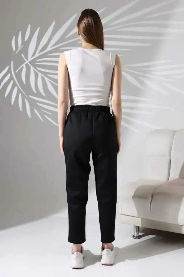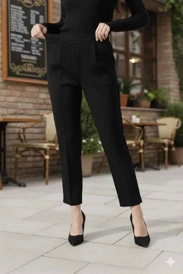Kadın Uzun Kollu Dalıç Kumaş Cep Detay Beli Lastikli ütüsüz Pantolon