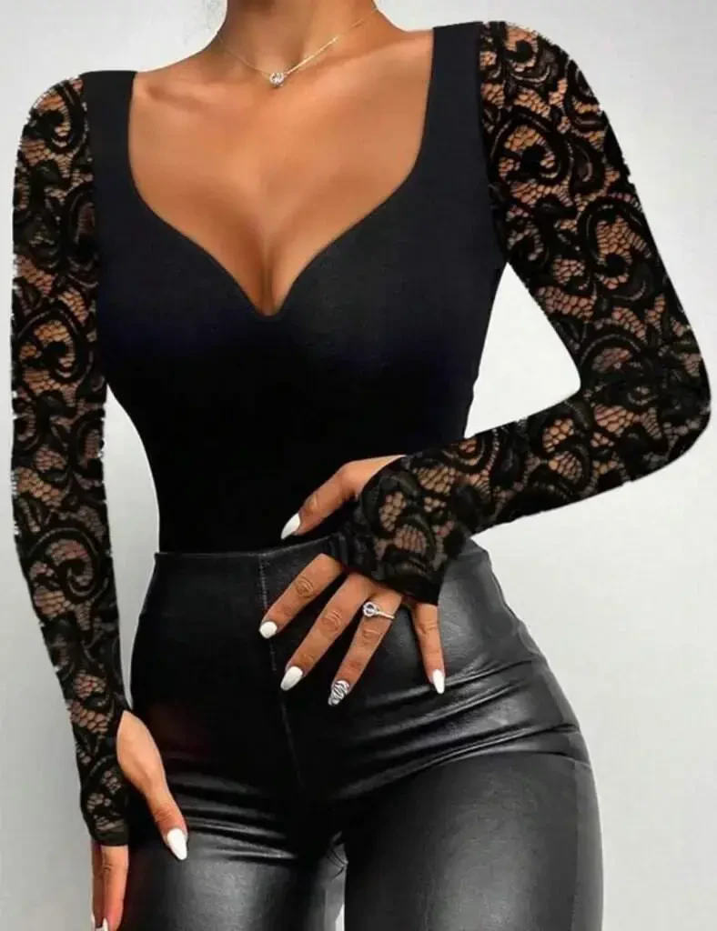 Kadın Uzun Kollu Dantelli Dekolte Detaylı Dalgıç BluzModelin Ölçüleri: Boy: 165, Kg: 55, Göğüs: 90, Bel: 72, Kalça: 100Modelin üzerindeki ürün M/38 bedendirDESEN-DiğerleriKALIP-Klasik