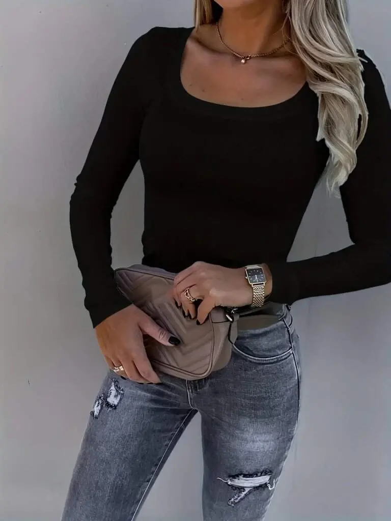 Kadın Uzun Kollu Derin Yuvarlak Yaka Kaşkorse Bluz