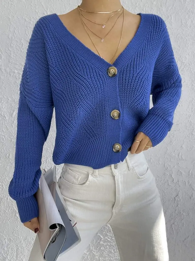 Kadın Uzun Kollu Düğme Detay Triko Hırka