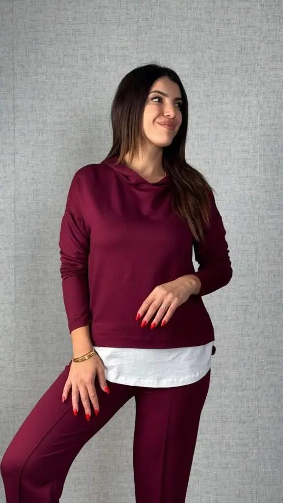 Kadın Uzun Kollu Kapşonlu Bağcıklı Viskon İki İplik Bluz ve Pantolon İkili Takım ile şıklığı ve rahatlığı bir arada yaşayın. Bu özel tasarım takım, günlük kullanımınızdan özel anlarınıza kadar her ortamda size eşlik edecek. Yüksek kaliteli viskon iki iplik kumaşı sayesinde gün boyu konforlu bir kullanım sunar. Bluzun kapüşonlu ve bağcıklı tasarımı, sportif bir şıklık katarken, uzun kollu yapısı serin havalarda sizi sıcak tutar. Pantolonun rahat kesimi, hareket özgürlüğünüzü kısıtlamaz ve gün boyu rahat etmenizi sağlar. Modelin üzerindeki ürün M/38 bedendir ve modelin ölçüleri şu şekildedir: Boy: 165 cm, Kilo: 55 kg, Göğüs: 90 cm, Bel: 72 cm, Kalça: 100 cm. Bu ölçüler, ürünün üzerinizde nasıl duracağına dair size fikir verecektir. İki iplik viskon kumaşın yumuşak dokusu, teninizle uyum içinde olup gün boyu konfor sunar. Bluz ve pantolonun uyumlu renkleri ve tasarımı, kolayca kombin yapmanızı sağlar. İster spor ayakkabılarla günlük bir stil yaratın, ister şık bir çift topuklu ayakkabıyla özel bir davete katılın. Bu takım, gardırobunuzun vazgeçilmez parçalarından biri olacak. Hem şık hem de rahat olmak isteyen kadınlar için ideal bir seçimdir. Uzun kollu bluz ve rahat kesim pantolonun bir araya geldiği bu takım, stilinizi yansıtmanıza yardımcı olurken aynı zamanda konforunuzdan ödün vermemenizi sağlar. Kapüşonlu ve bağcıklı bluz detayı, takıma modern bir dokunuş katarken, viskon kumaşın hafifliği ve nefes alabilir yapısı gün boyu rahatlık sunar. Bu takım, hem evde dinlenirken hem de dışarıda aktif bir gün geçirirken size eşlik edecek çok yönlü bir seçenektir. Şıklığı ve rahatlığı bir arada arayan kadınlar için mükemmel bir tercihtir. Gardırobunuzun kurtarıcısı olacak bu takım, farklı aksesuarlarla kolayca kombinlenebilir ve her tarza uyum sağlayabilir. İki iplik viskon kumaşın kalitesi, uzun ömürlü bir kullanım sunarken, şık tasarımı her zaman dikkat çekici olmanızı sağlar. Kadın Uzun Kollu Kapşonlu Bağcıklı Viskon İki İplik Bluz ve Pantolon İkili Takım ile stilinizi ve konforunuzu bir üst seviyeye taşıyın.