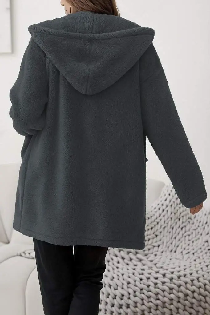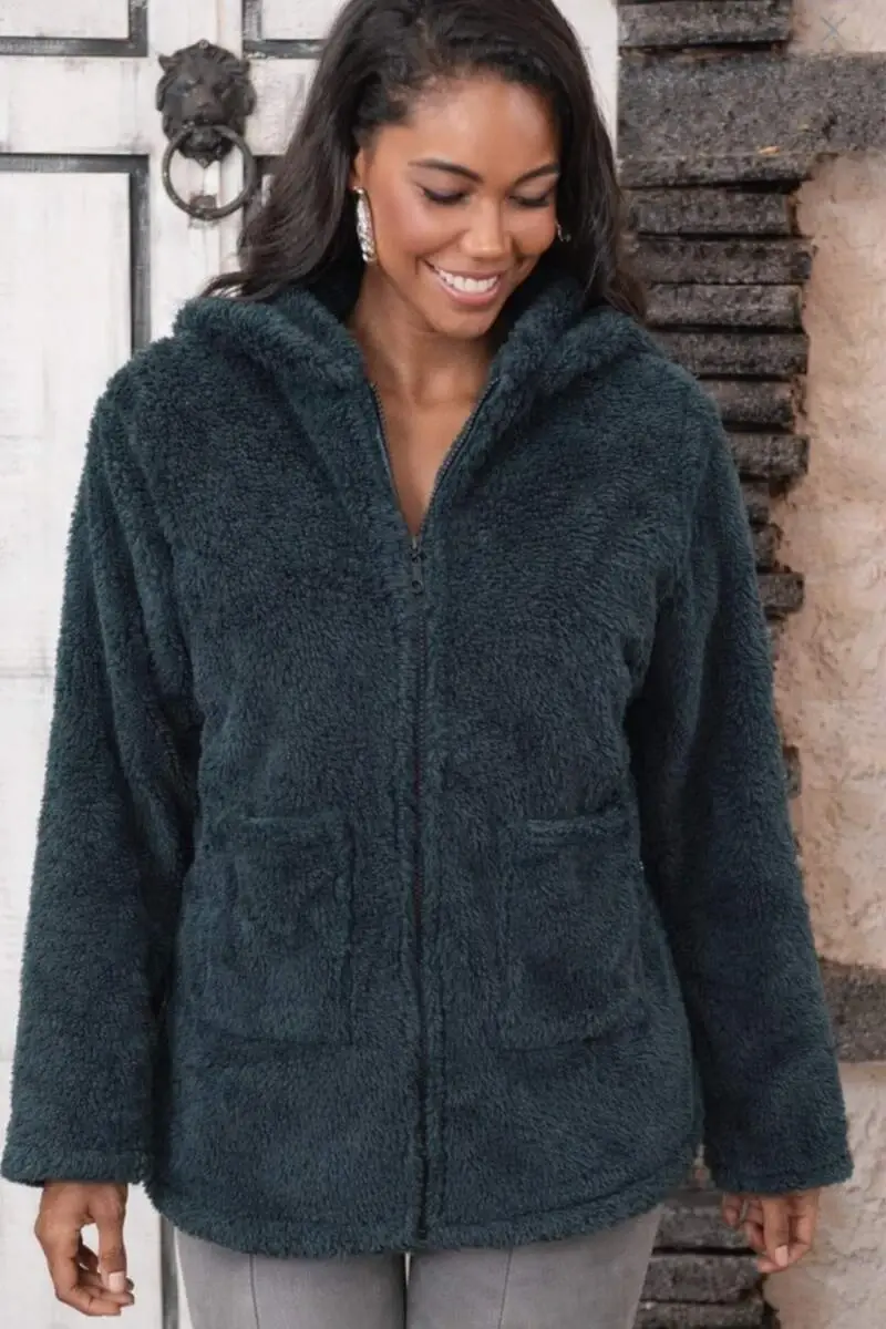 Kadın Uzun Kollu Kapşonlu önden Fermuarlı Cepli Welsoft Ceket