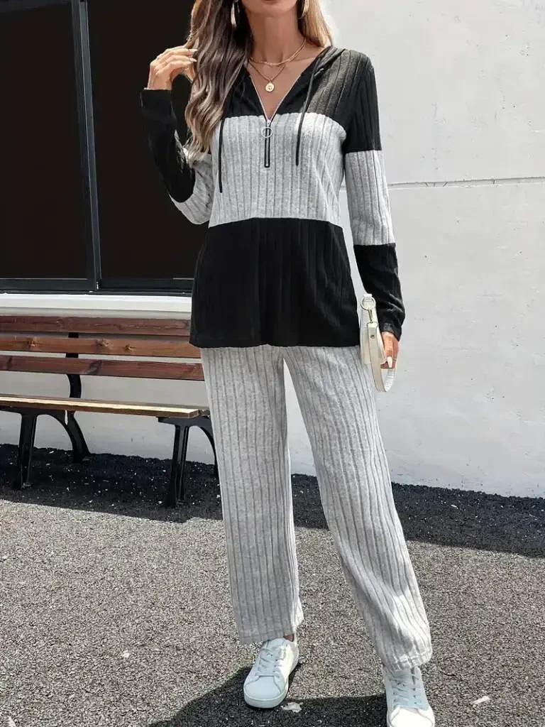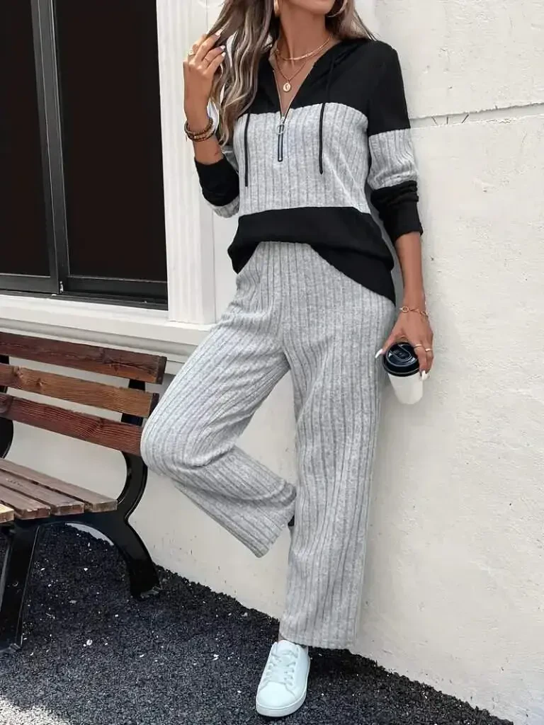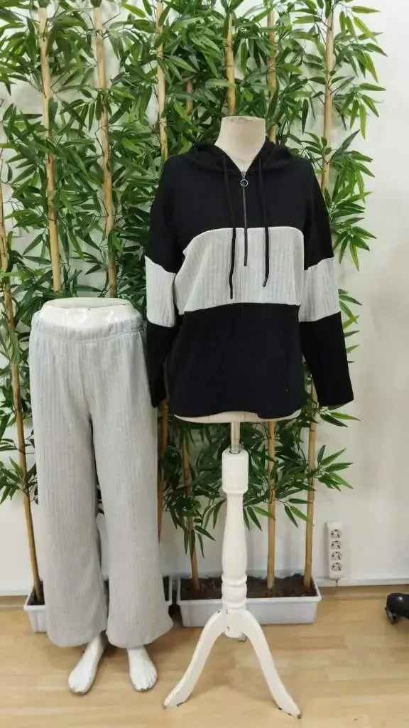 Kadın Uzun Kollu Kapşonlu önden Fermuarlı şardonlu Kaşkorse Bluz Ve PantolonModelin Ölçüleri: Boy: 165, Kg: 55, Göğüs: 90, Bel: 72, Kalça: 100Modelin üzerindeki ürün M/38 bedendirKOL UZUNLUK-Uzun KolTAKIM OZELLIK-Pantolonlu TakımEK OZELLIKLER-Boş/Ek özellik Yok