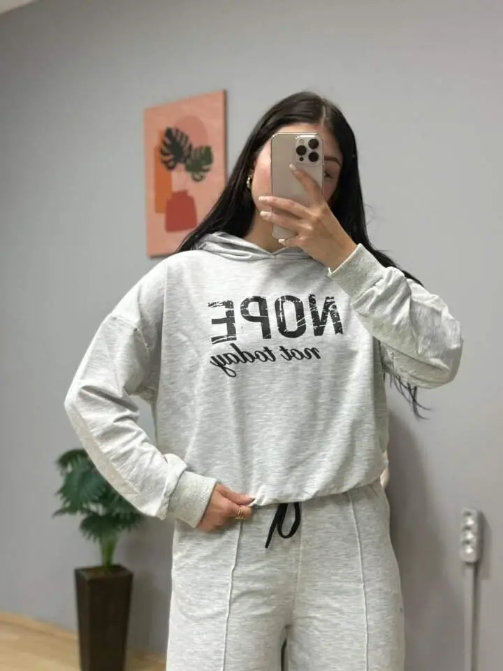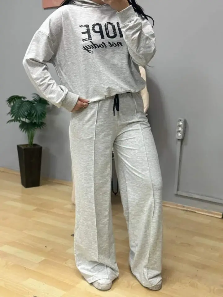 Kadın Uzun Kollu Nope Baskılı Beli Ribanalı Ikili Takım