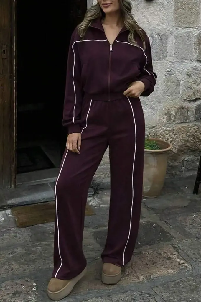 Kadın Uzun Kollu önden Fermuarlı Bluz Ve Pantolon Modal Ikili Takım