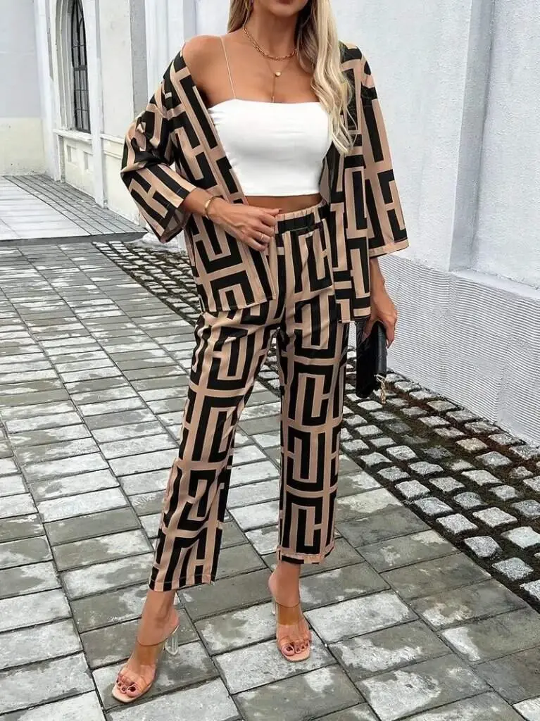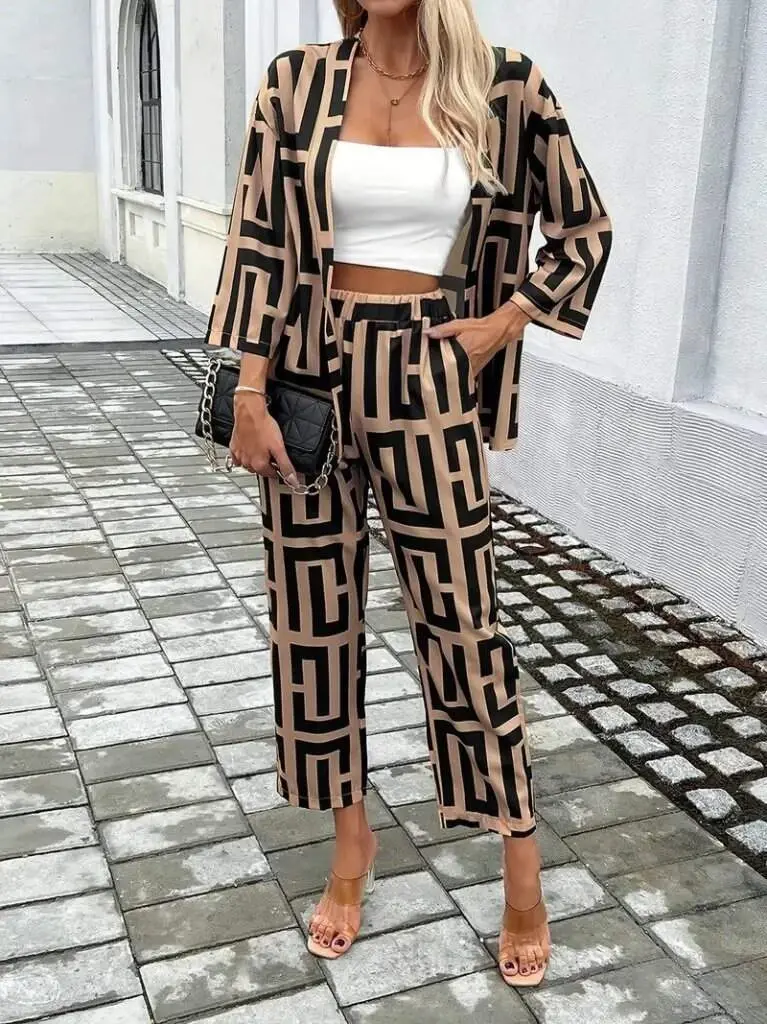 The Women's Long Sleeve Open Front Patterned Two-Thread Jacket and Pants Set is a must-have in the modern woman's wardrobe, combining elegance and comfort. This set is an ideal option for both daily wear and special occasions. The soft touch of the two-thread fabric provides all-day comfort, while the patterned design adds originality to your style. The open-front design of the jacket allows you to create different combinations, while the long sleeves keep you warm in cool weather. The pants do not restrict your freedom of movement thanks to their comfortable cut and help you create a stylish silhouette. The M/38 size on the model is compatible with 165 cm height, 55 kg weight, 90 cm bust, 72 cm waist and 100 cm hip measurements. These measurements will give you an idea of how the suit will look on you. The patterned structure of the suit offers a look that can adapt to any environment. Whether you make a daily combination with sneakers or get a more stylish look with heels, this suit will always highlight your style. The durability of the two-thread fabric offers long-lasting use, while its easy-to-iron feature saves you time. This suit is the perfect choice for women who care about both elegance and comfort. You can reflect your own style by complementing this suit, which will be an indispensable part of your wardrobe, with different accessories. You can dazzle with your elegance both in daily life and at special events. The quality of the fabric and the attention to detail in the stitching ensure that the suit remains like the first day for many years. This suit is not just a piece of clothing, but also a style statement.