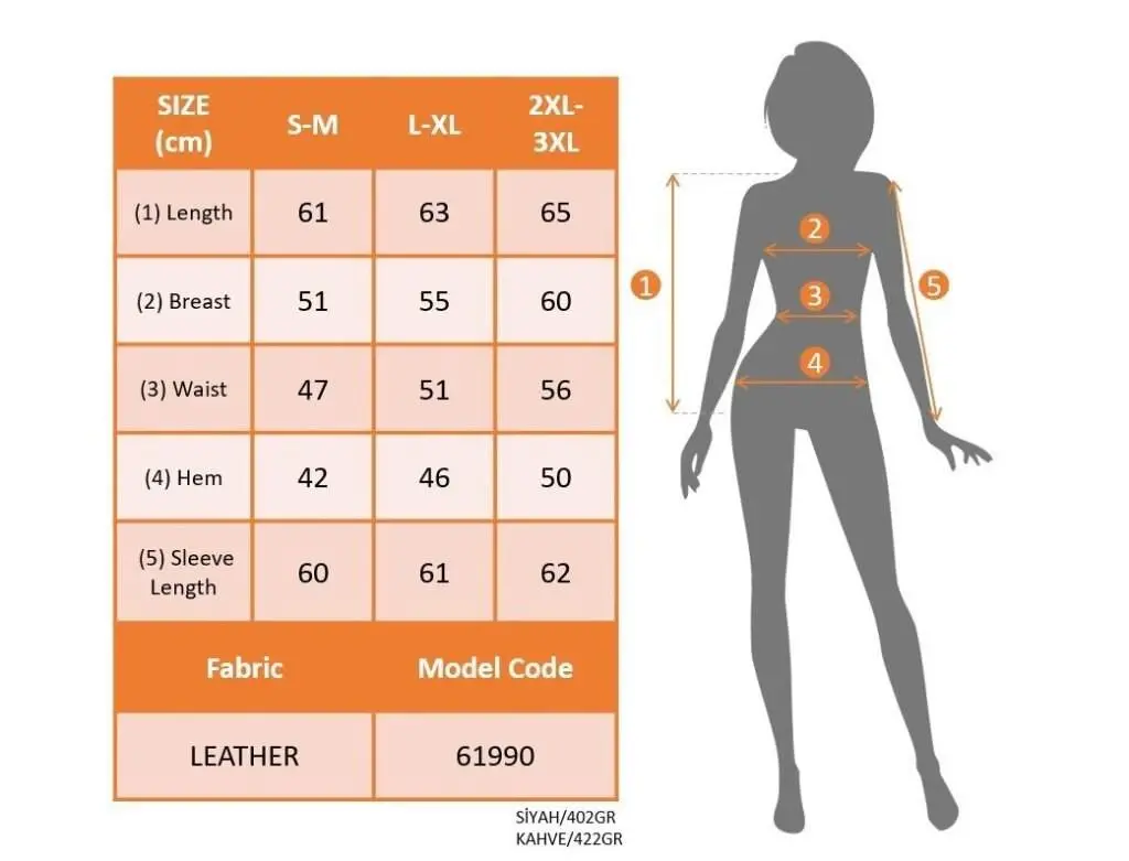 Kadın Uzun Kollu Ribanalı önden Fermuarlı Deri CeketModelin Ölçüleri: Boy: 165, Kg: 55, Göğüs: 90, Bel: 72, Kalça: 100Modelin üzerindeki ürün M/38 bedendirKOL UZUNLUK-Uzun KolUZUNLUK-DiğerleriKAPISON-KapüşonsuzIC MALZEME-Dogal