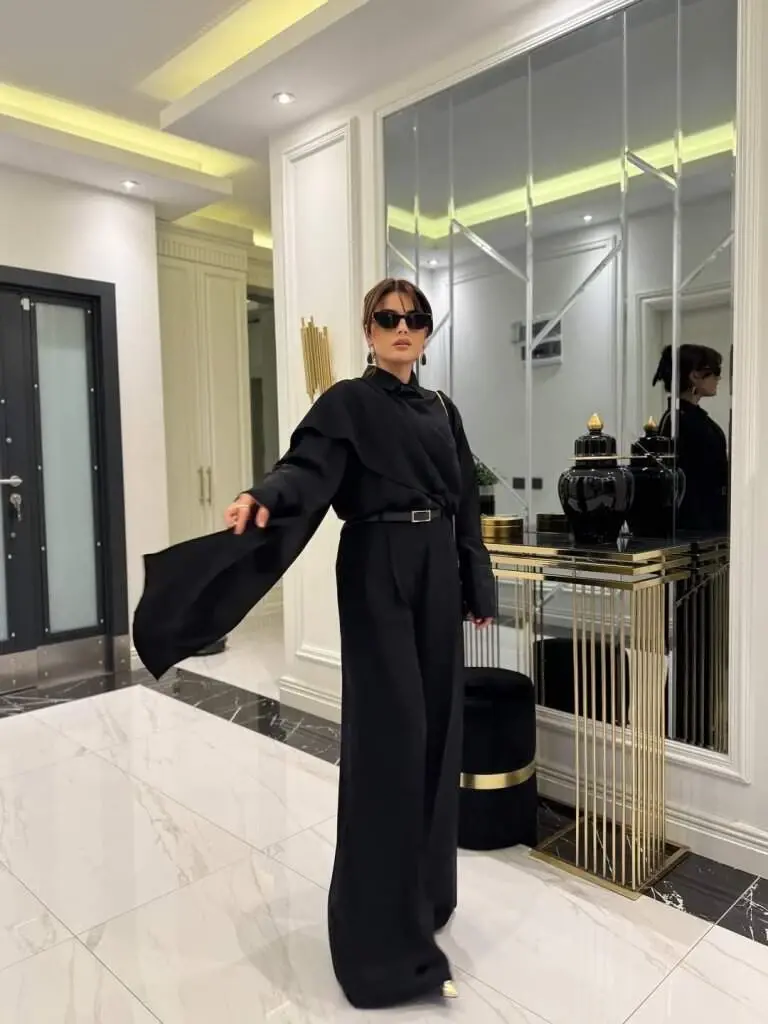 Kadın Uzun Kollu şal Detaylı Bluz Ve Pantolon Ikili Takım