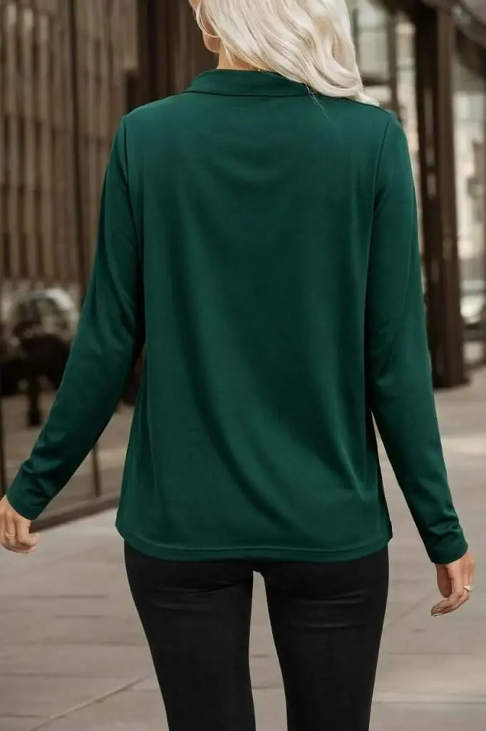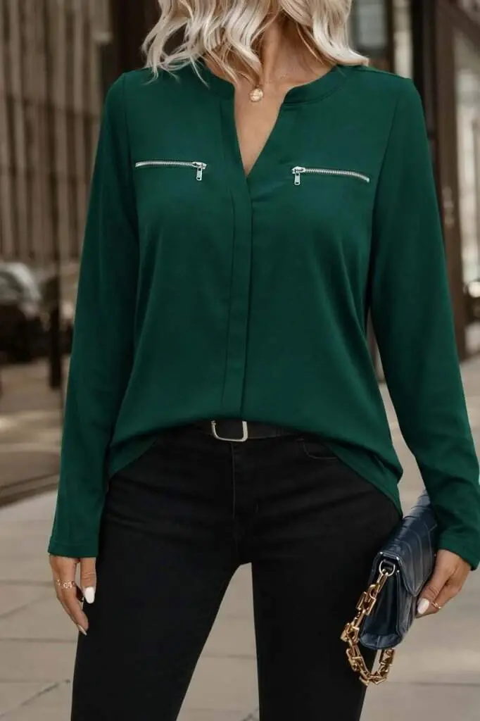 Kadın Uzun Kollu V Hakim Yaka Fermuar Detaylı Viskon Bluz