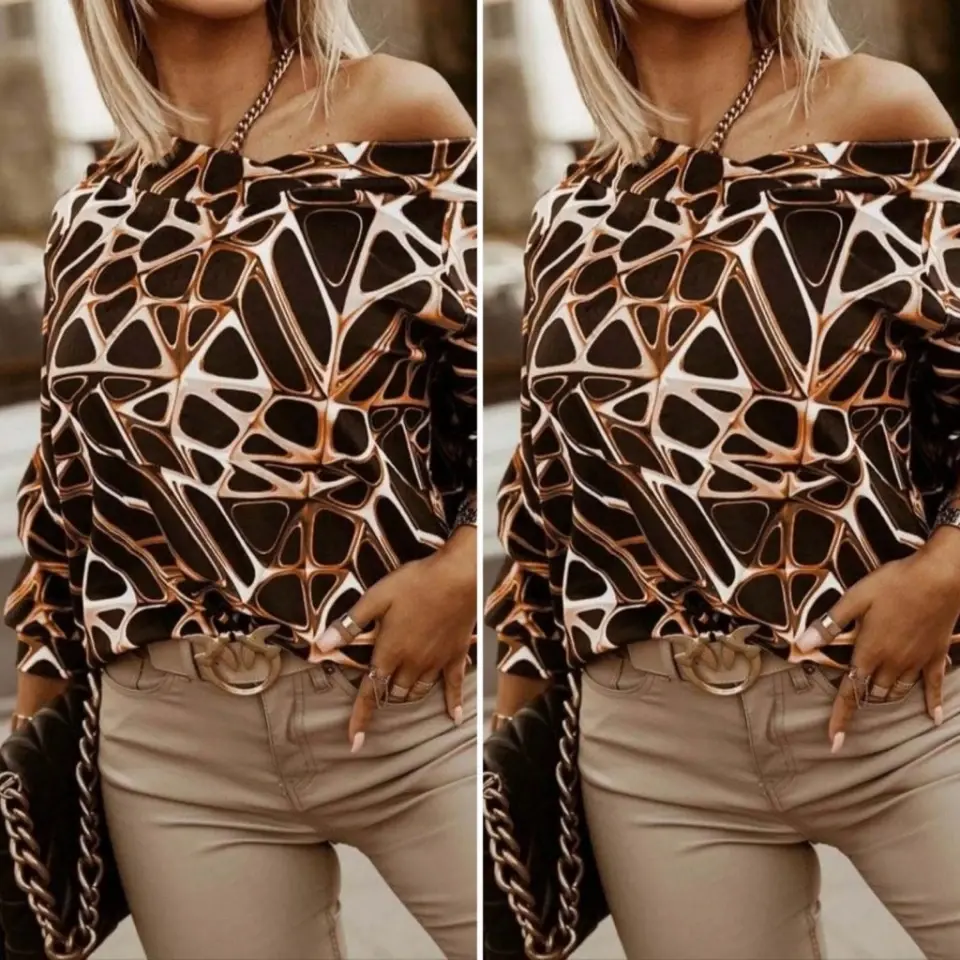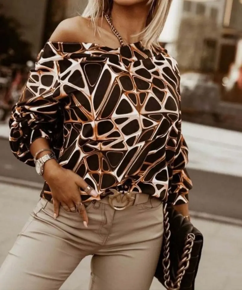Kadın Uzun Kollu V Yaka Düşük Omuz Geometrik Desen şardonlu Dalgıç BluzModelin Ölçüleri: Boy: 165, Kg: 55, Göğüs: 90, Bel: 72, Kalça: 100Modelin üzerindeki ürün M/38 bedendir