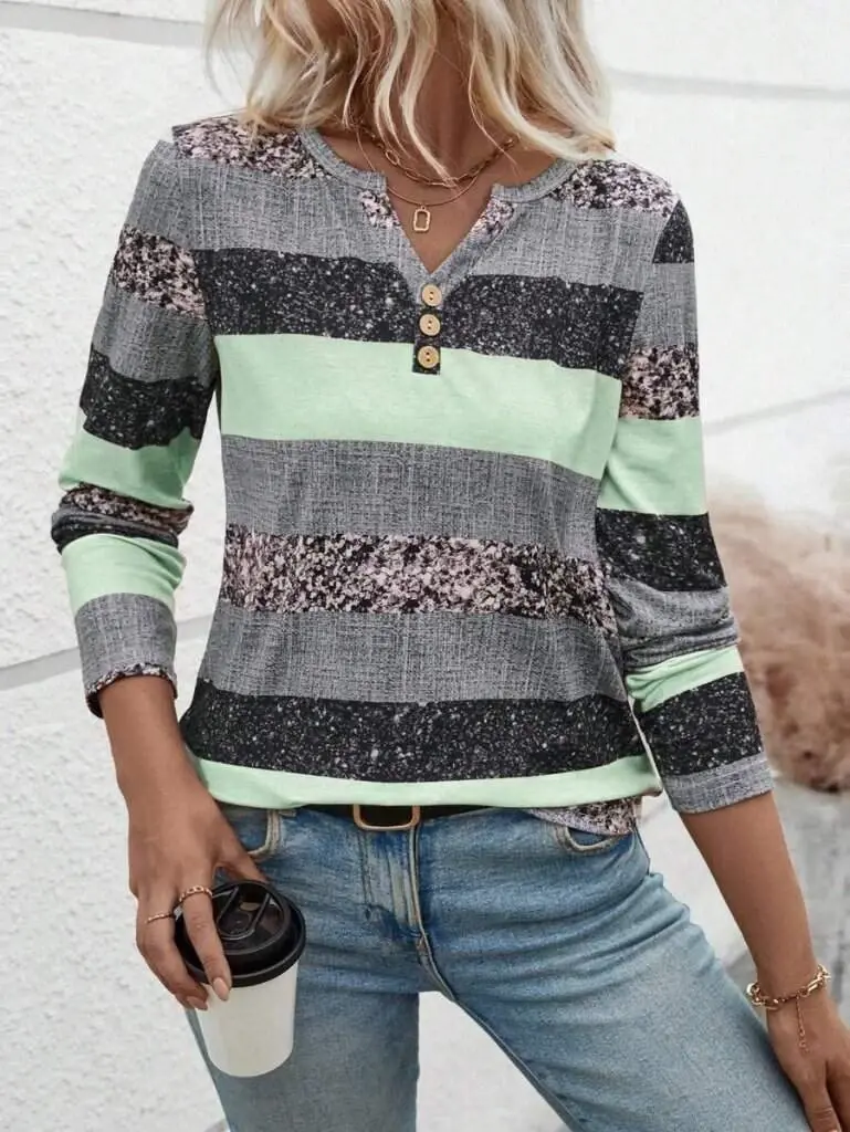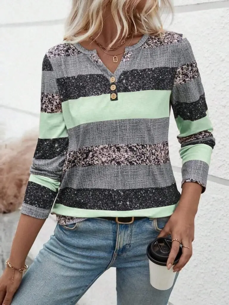 Kadın Uzun Kollu Yakadan Düğmeli çizgili Desenli Süprem BluzModelin Ölçüleri: Boy: 165, Kg: 55, Göğüs: 90, Bel: 72, Kalça: 100Modelin üzerindeki ürün M/38 bedendirDESEN-DiğerleriKALIP-Klasik