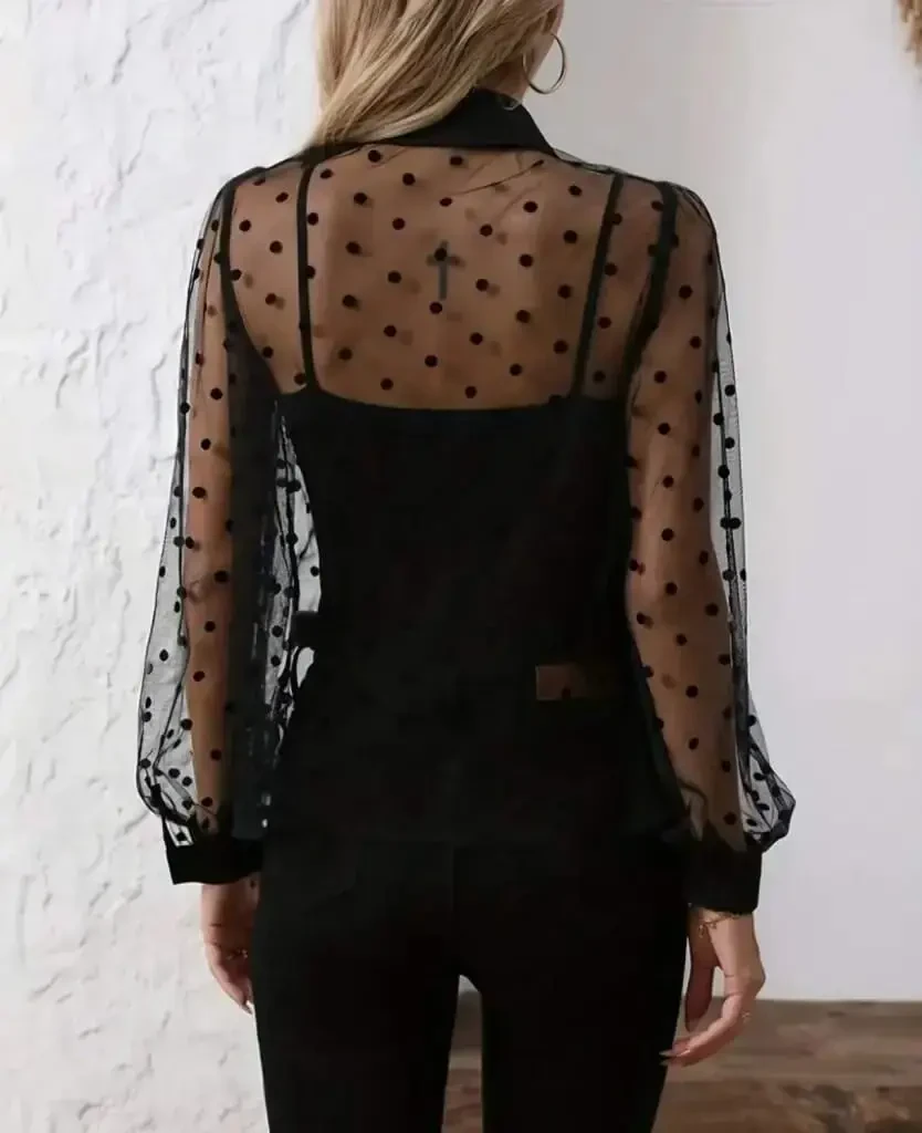 Uzun kollu üst, şeffaf tül detaylarıyla hareketlendirilmiş olup, feminen ve zarif bir görünüm kazandırır. Yakalı tasarım, klasik bir dokunuş sağlarken, tül detayları modern ve çarpıcı bir hava yaratır. Viskon atlet ise, yumuşak dokusu sayesinde gün boyu rahatlık sunar. Cildinize nefes aldıran viskon kumaş, terlemeyi önler ve gün boyu ferah kalmanızı sağlar.