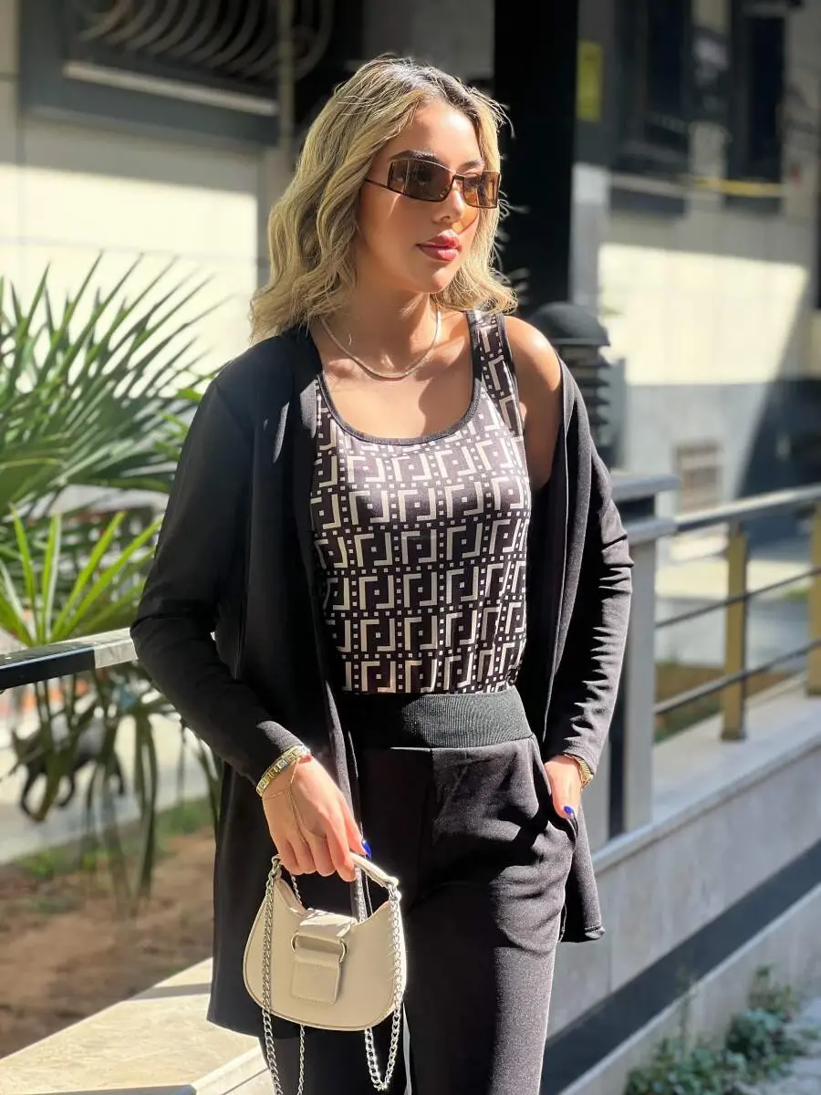 Kadın Uzun Kollukrep üçlü TakımModelin Ölçüleri: Boy: 165, Kg: 55, Göğüs: 90, Bel: 72, Kalça: 100Modelin üzerindeki ürün M/38 bedendirEK OZELLIKLER-Boş/Ek özellik YokTAKIM OZELLIK-Pantolonlu TakımKOL UZUNLUK-Uzun Kol