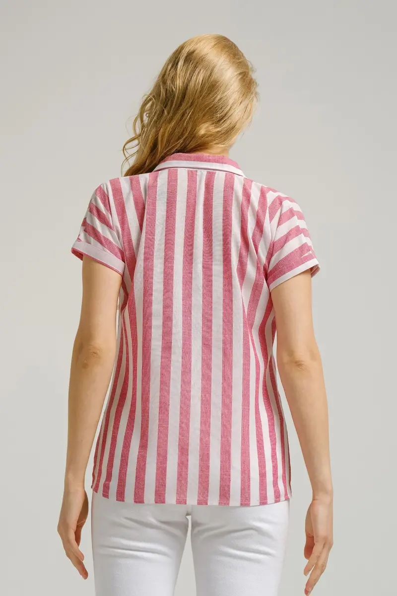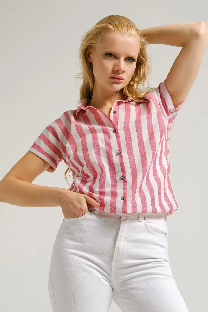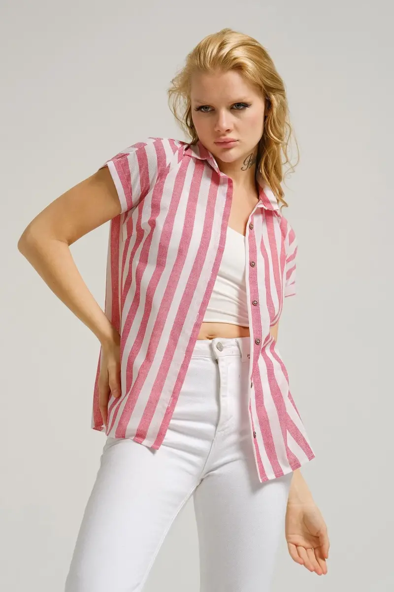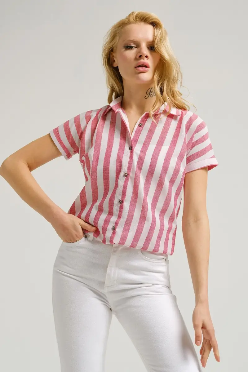 Kadın Vişne Desenli Kısa Kol Gömlek ARM-22Y001052-Vişne