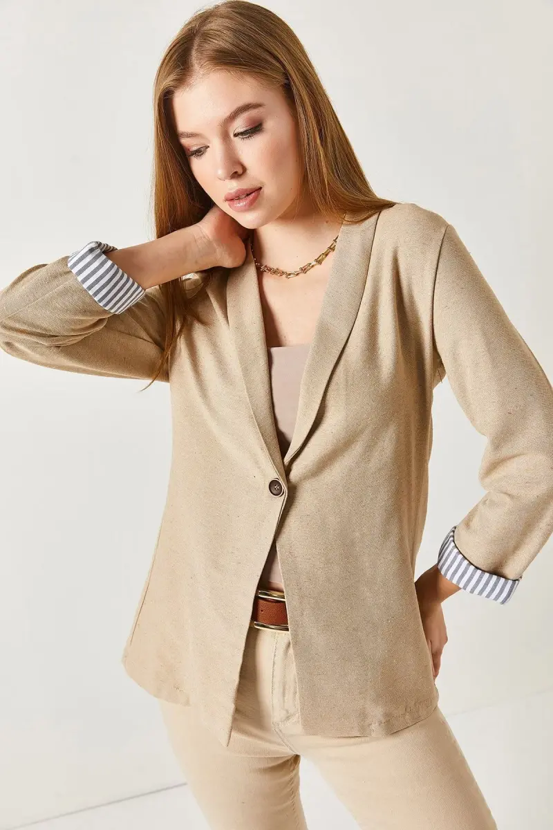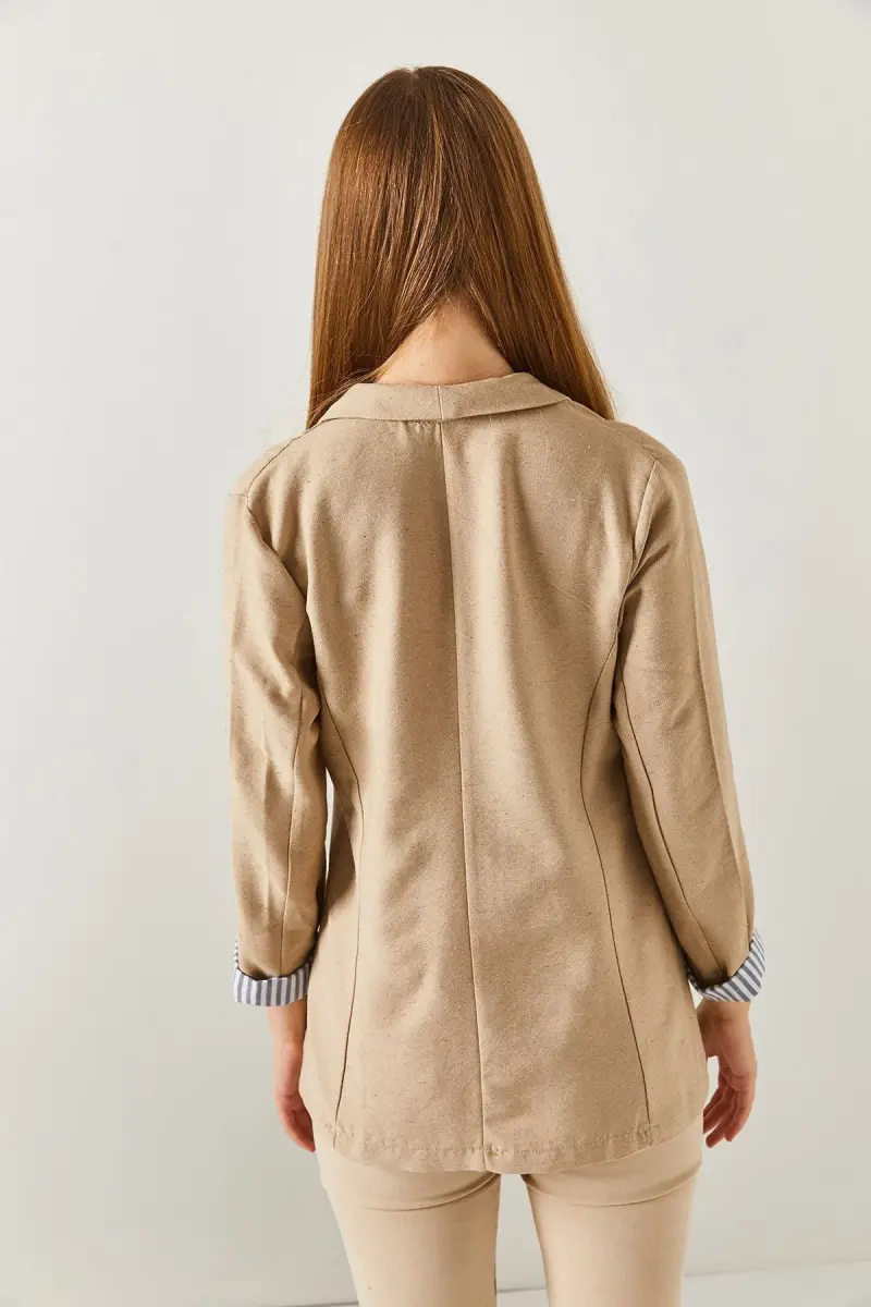 Kadın Vizon Kol İçi Çizgili Tek Düğmeli Ceket ARM-22K001122-Vizon