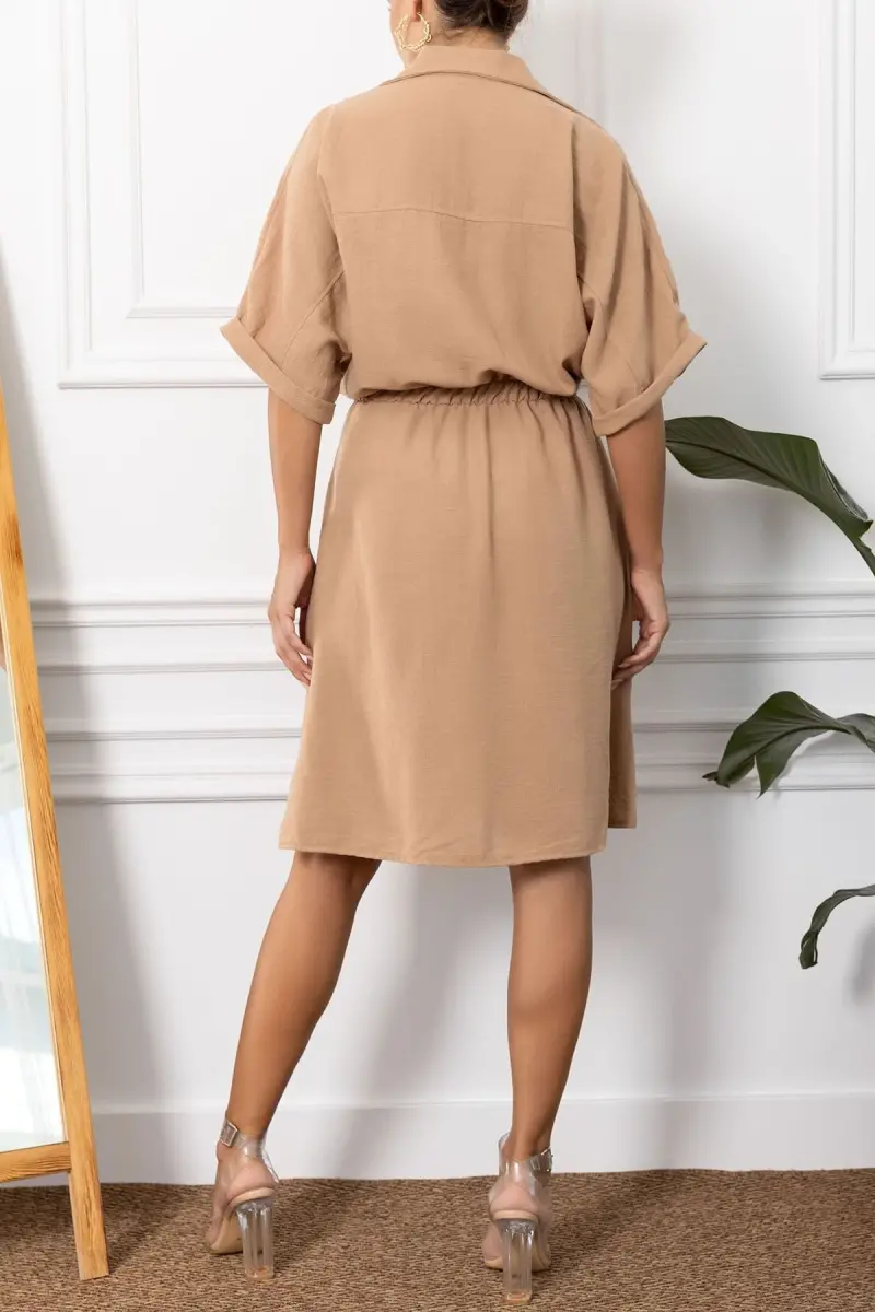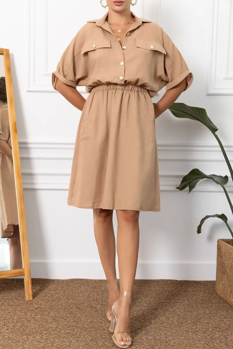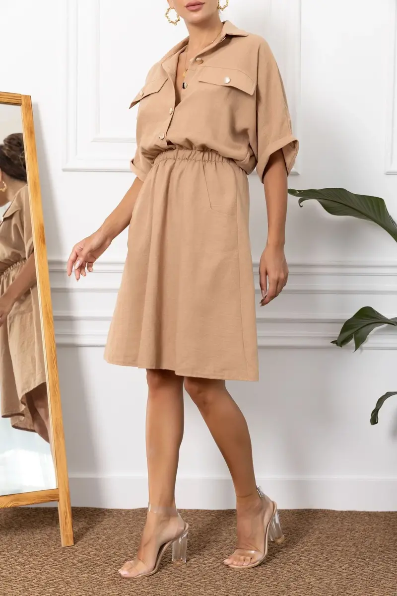 Kadın Vizon Yarasa Kol Cepli Beli Lastikli Elbise ARM-23Y001076-Vizon