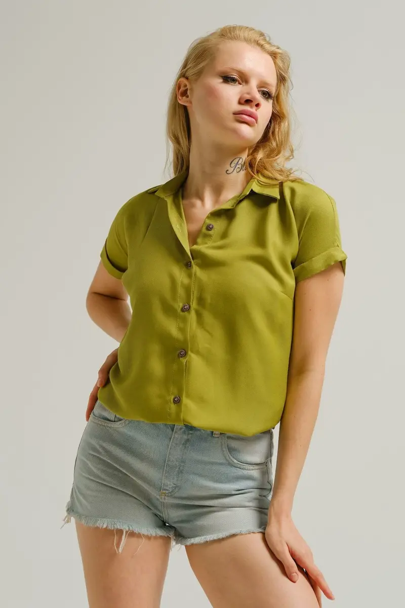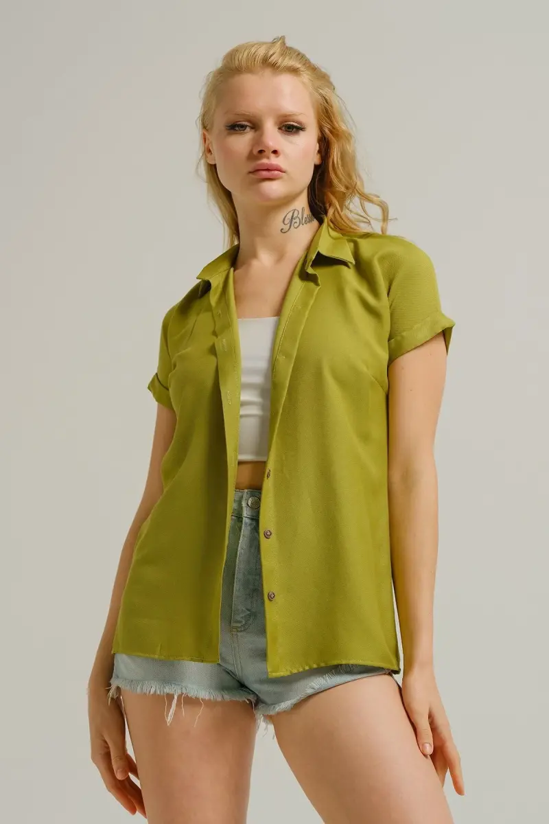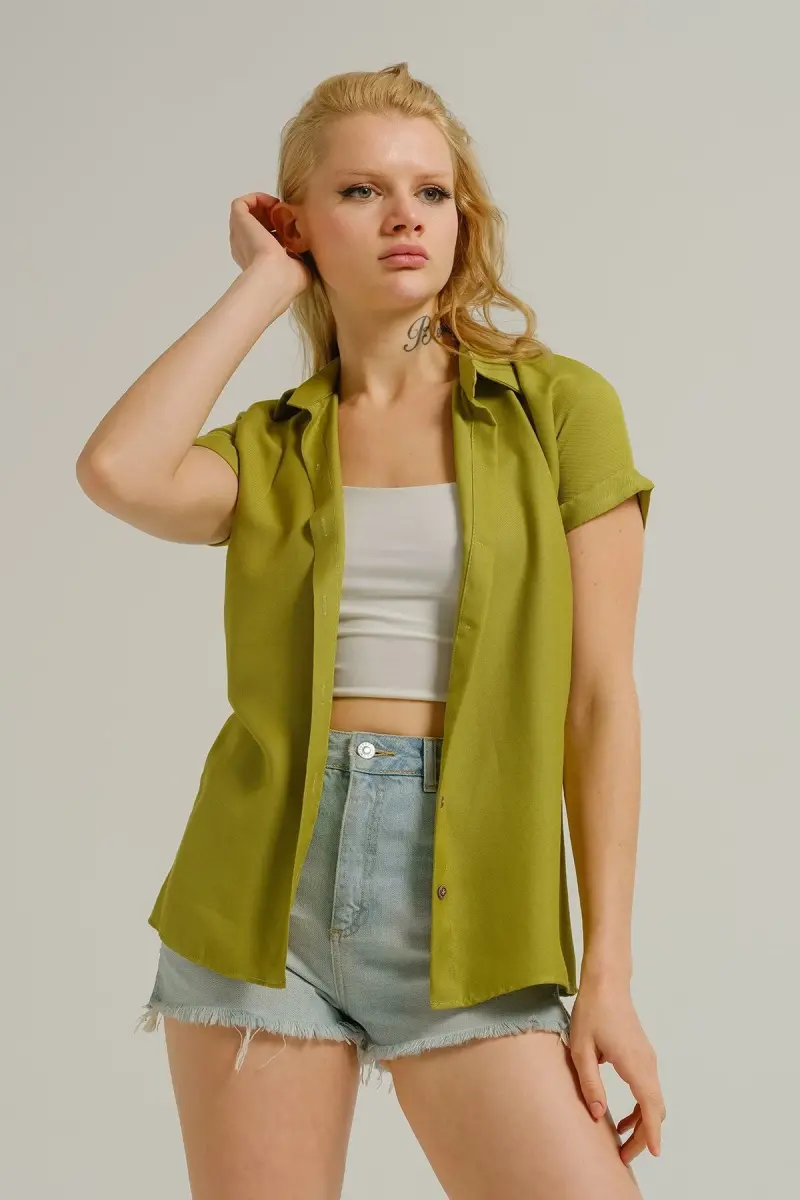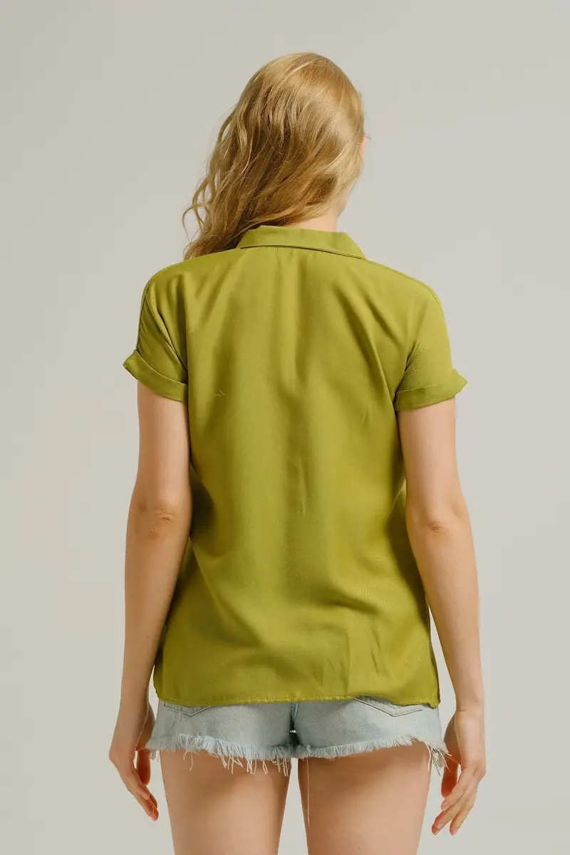Kadın Yağ Yeşili Kısa Kol Gömlek ARM-19Y001065-Yağ Yeşili