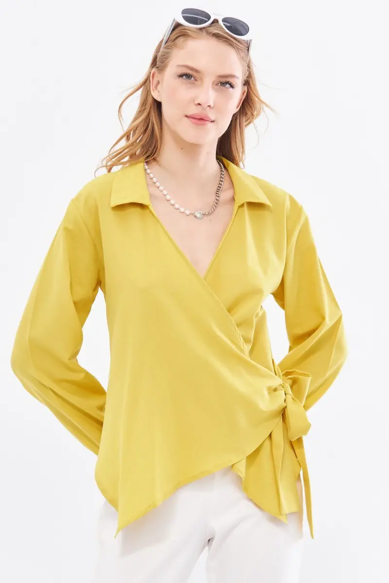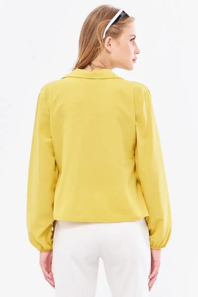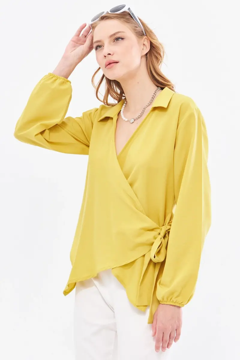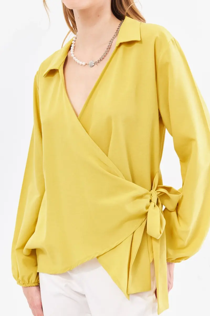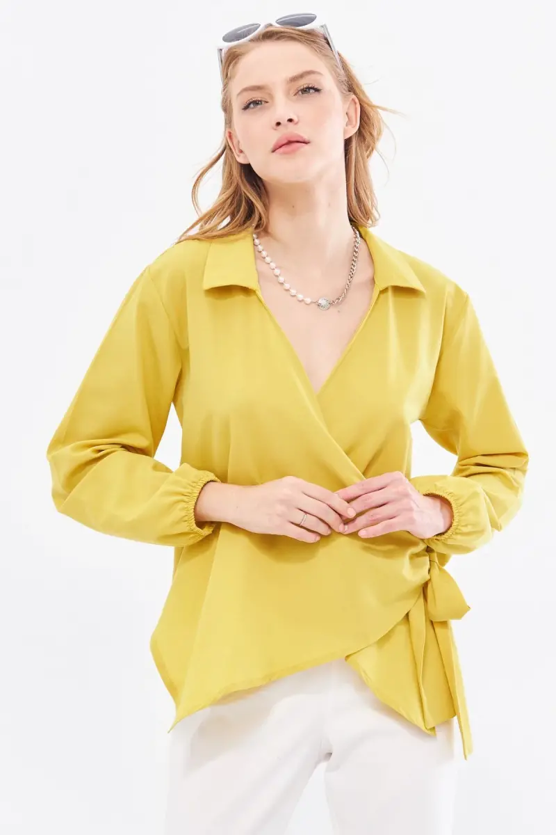 Kadın Yağ Yeşili Yakalı Kruvaze Bluz ARM-22Y024025-Yağ Yeşili