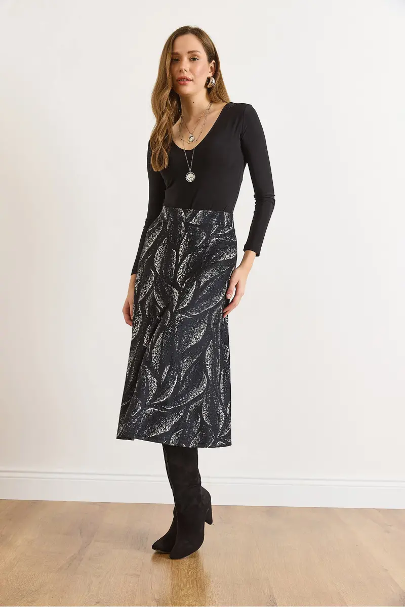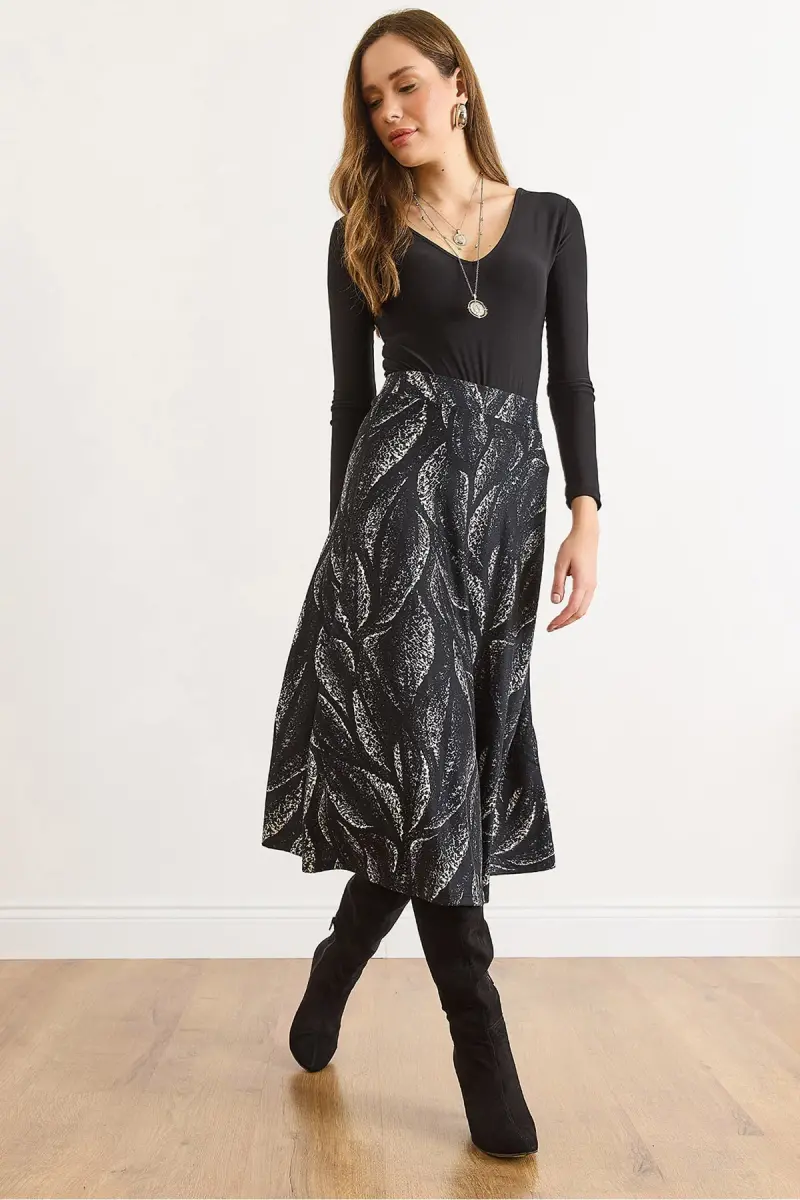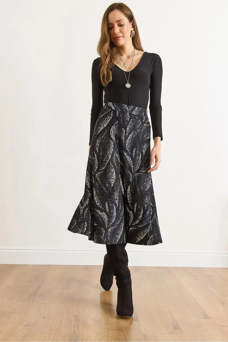 Kadın Yaprak Siyah Beli Lastikli Süet Dokulu Çan Etek ETK-19000141-Yaprak Siyah