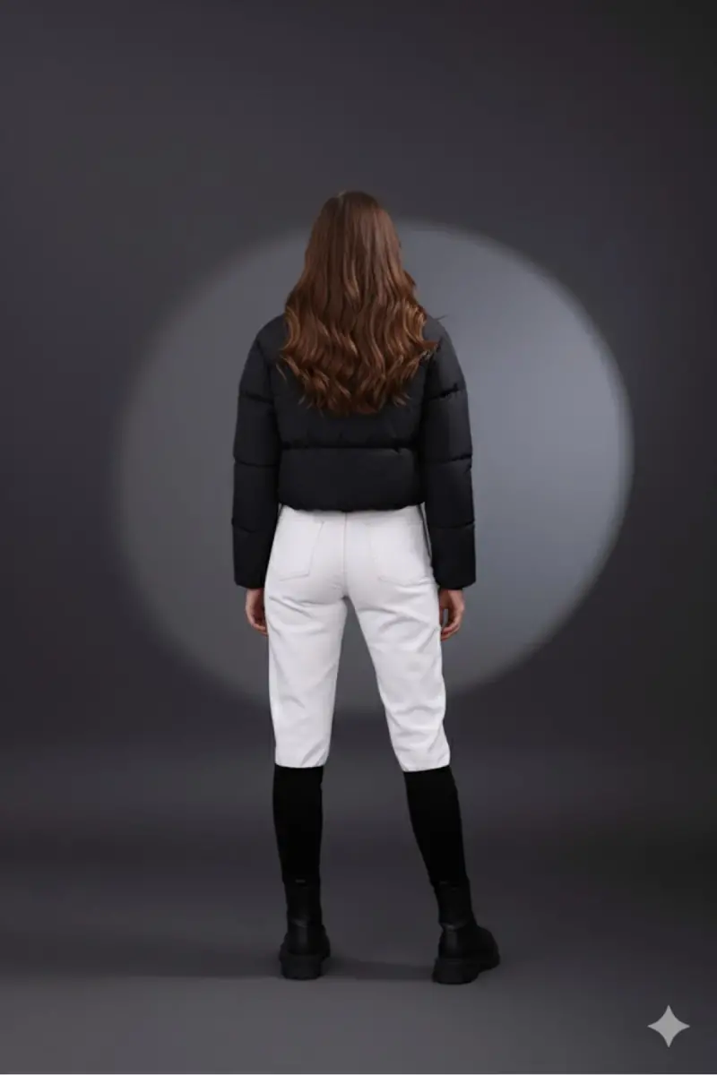 Kadın Yeni Sezon Çapraz Dikişli Kışlık Mont Lastik Detaylı Crop-Siyahcrop3