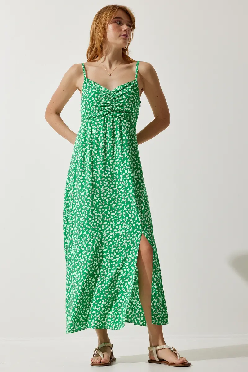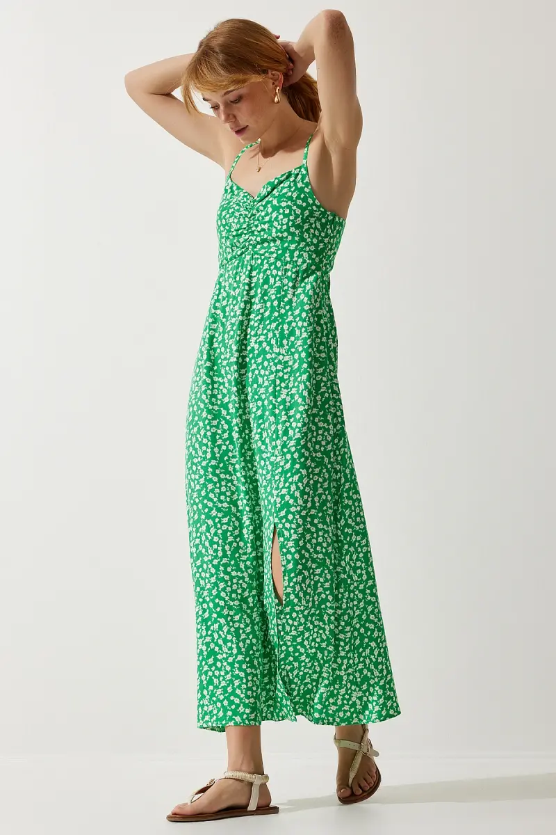 Bu ürün Trendyol tarafından gönderilecektir.Kampanya fiyatından satılmak üzere 50 adetten fazla stok sunulmuştur.Bir ürün, birden fazla satıcı tarafından satılabilir. Birden fazla satıcı tarafından satışa sunulan ürünlerin satıcıları ürün için belirledikleri fiyata, satıcı puanlarına, teslimat statülerine, ürünlerdeki promosyonlara, kargonun bedava olup olmamasına ve ürünlerin hızlı teslimat ile teslim edilip edilememesine, ürünlerin stok ve kategorileri bilgilerine göre sıralanmaktadır.Bu üründen en fazla 11 adet sipariş verilebilir. 11 adedin üzerindeki siparişleri Trendyol iptal etme hakkını saklı tutar. Belirlenen bu limit kurumsal siparişlerde geçerli olmayıp, kurumsal siparişler için farklı limitler belirlenebilmektedir.15 gün içinde ücretsiz iade. Detaylı bilgi için [page="return_conditions"]tıklayın .Askılı tasarımı ile yaz aylarında serin ve rahat bir kullanım sunarYıkama talimatlarına uygun şekilde kolayca temizlenebilir, böylece elbisenizin ilk günkü gibi kalmasını sağlarYırtmaç detayı sayesinde hareket özgürlüğü artırılır ve şık bir görünüm kazandırılırV yaka kesimi ile feminen bir stil oluştururken, dekolte bölgesini zarifçe vurgularDesenli yapısıyla göz alıcı bir görünüm sunar ve stilinizi öne çıkarırAskılı kol boyu sayesinde yaz aylarında hafif ve konforlu bir deneyim yaşatırFermuarlı kapama şekli pratik kullanım imkanı tanırken, kolay giyip çıkarmayı mümkün kılarTüm yaş gruplarına hitap eden tasarımıyla geniş bir kullanıcı yelpazesine sahiptirAline silueti sayesinde vücut hatlarını nazikçe sararak şık bir duruş sergilerMidi boyu ile hem günlük kullanım hem de özel günler için idealdirhem rahat hem de şık%100 viskoz materyal bile
