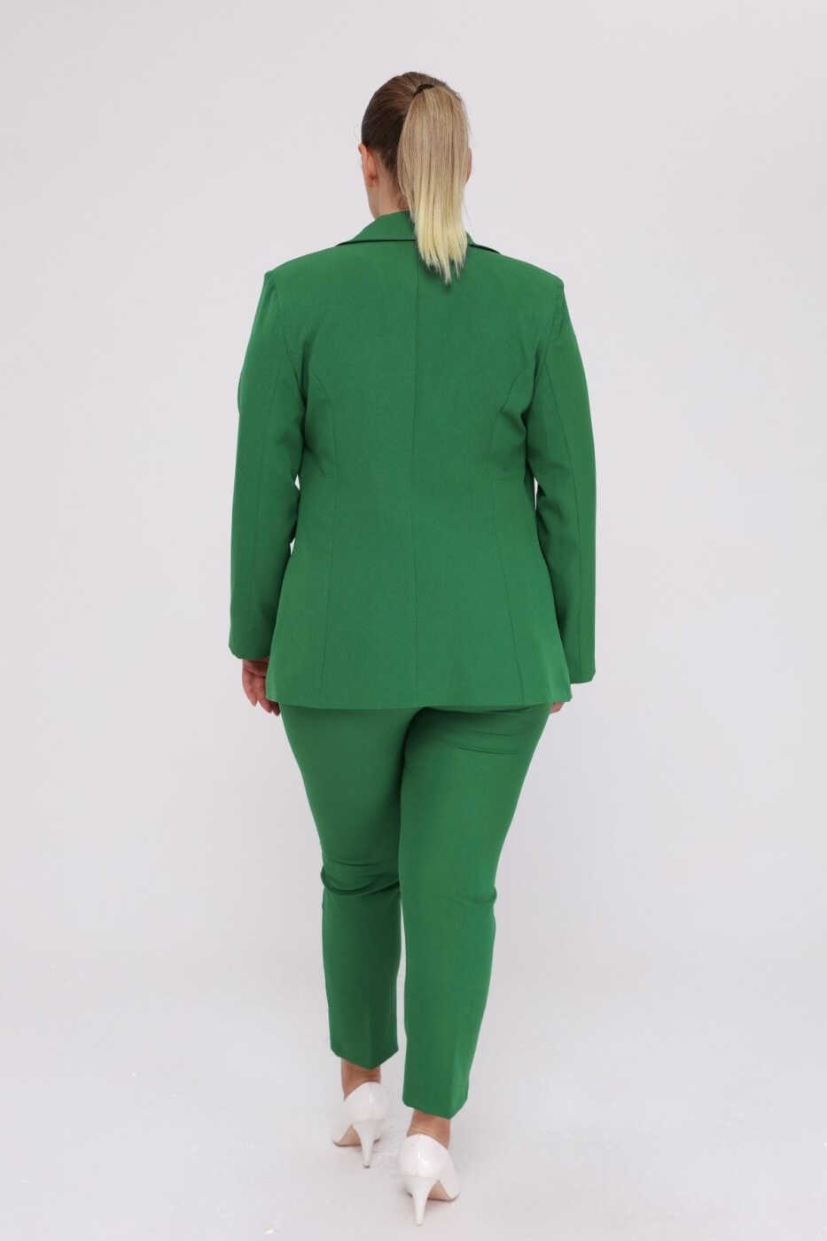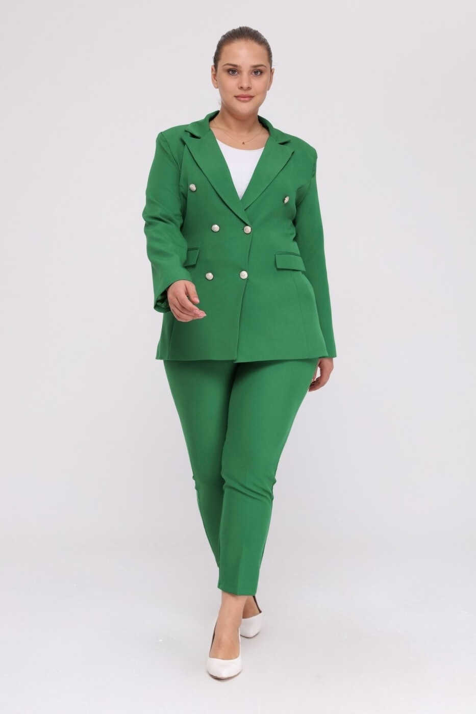 Ushbu ajoyib kostyum bilan har qanday muhitda diqqat markazida bo'ling, u uslub va qulaylikni birlashtiradi! Nafis yashil Blazer ko'ylagi, zamonaviy keng oyoqli shim va belingizni ta'kidlaydigan kamar ayollik qiyofasini yaratadi. Yuqori sifatli matodan tikilgan kostyum nafas olish va qulaylikni kafolatlaydi. Har qanday tana turiga mos keladigan katta o'lchamli variantlar bilan, bu kostyum sizga maxsus kunlar yoki kundalik hayot uchun zamonaviy qiyofani yaratishga yordam beradi.