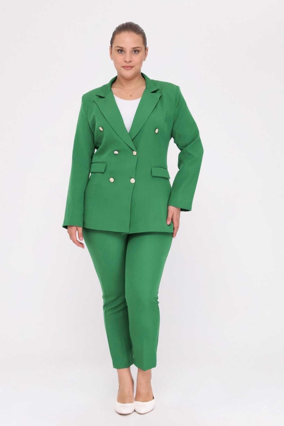 Ayollar uchun yashil Blazer ko'ylagi, kamar, cho'ntak, keng oyoqli shim, katta o'lchamli kostyum | Zamonaviy va qulay