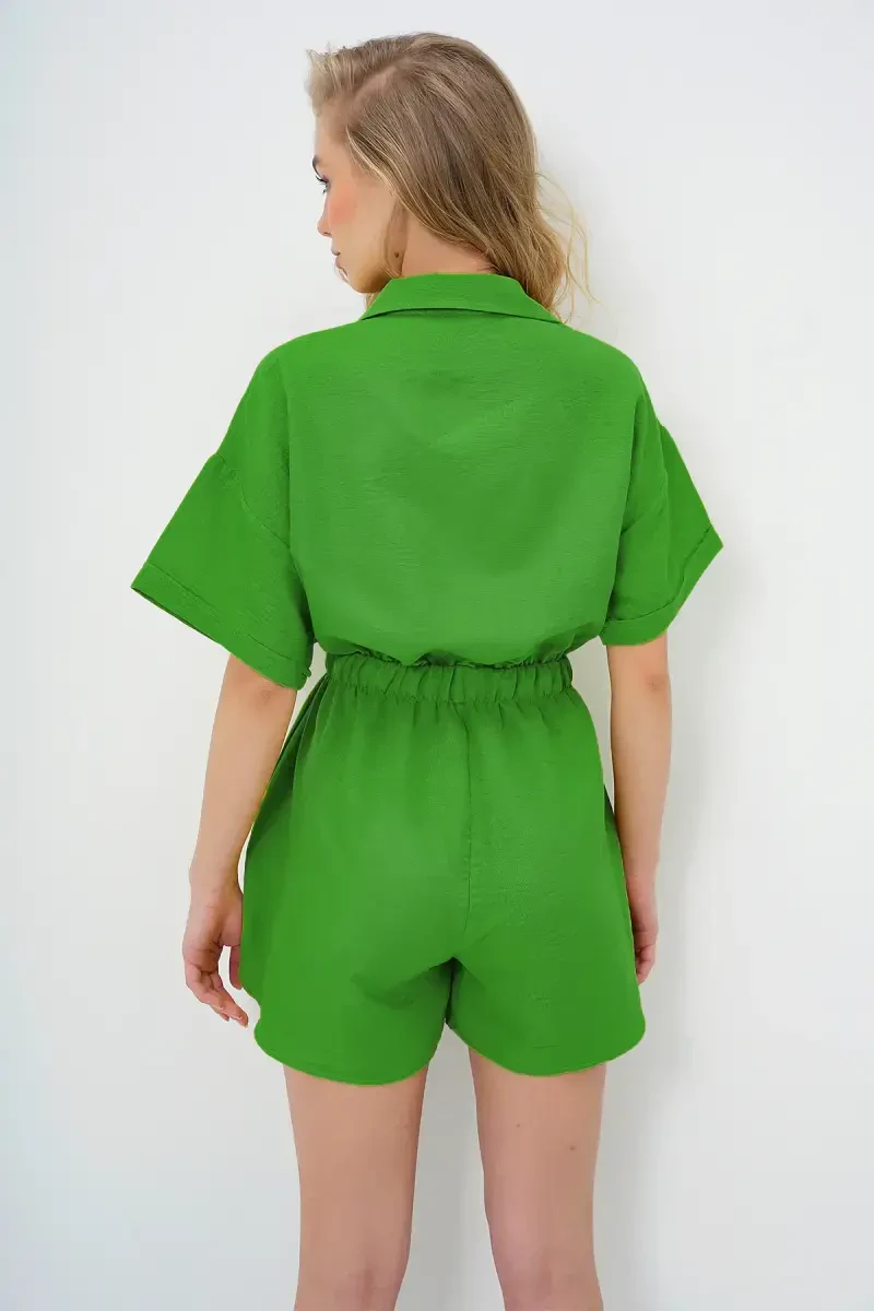 Kadın Yeşil Gömlek Yaka Şort Tulum | Yazlık Şık Tulum Modelleri