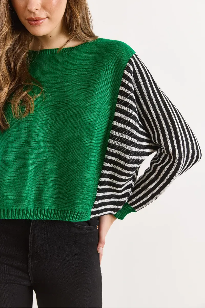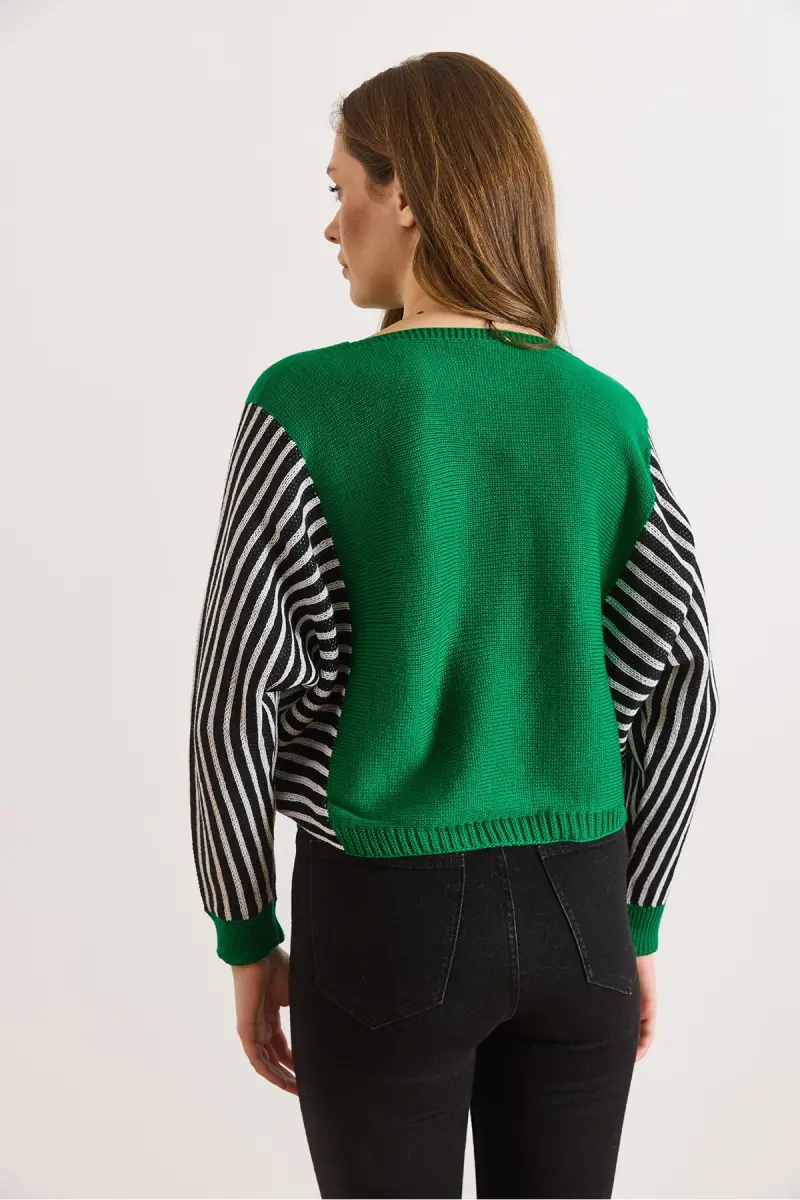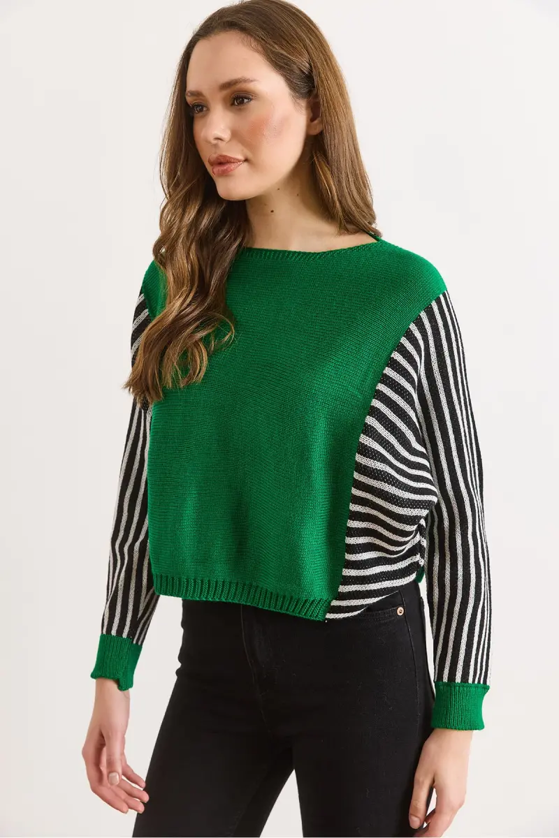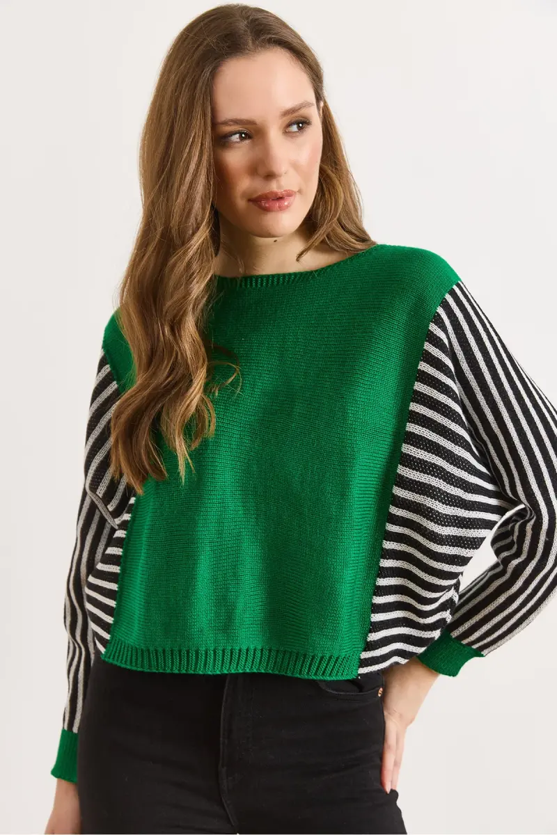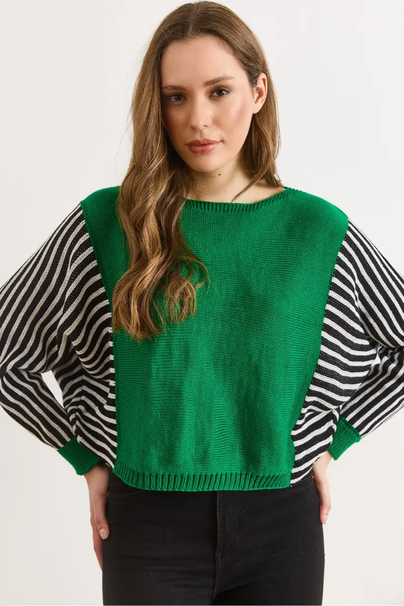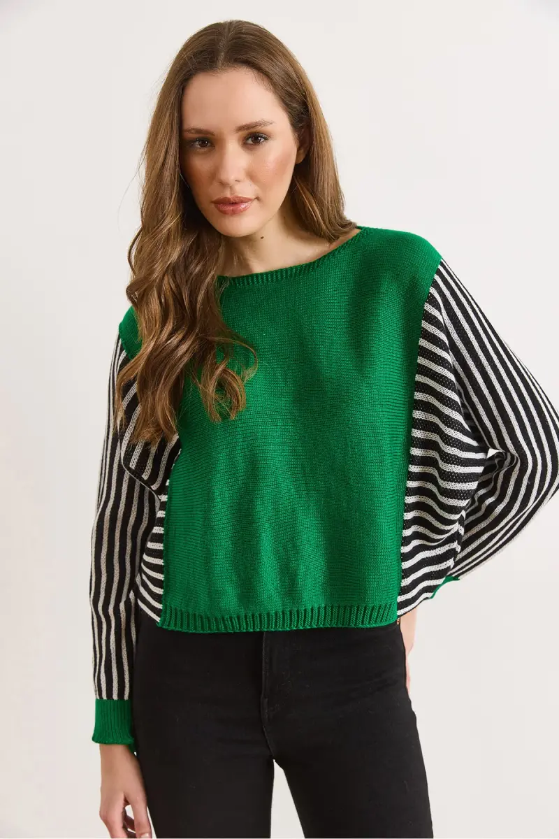 Kadın Yeşil Kol Detaylı Triko Kazak KZK-19000817-Yeşil