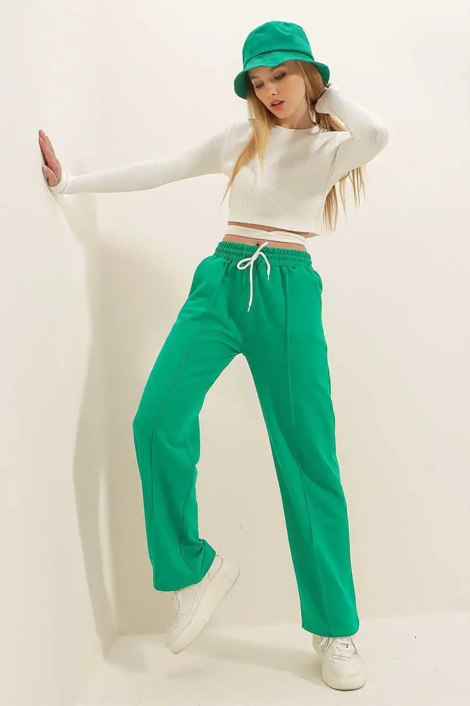Bu ürün Trend Alaçatı Stili tarafından gönderilecektir.Kampanya fiyatından satılmak üzere 5 adetten az stok bulunmaktadır.Bir ürün, birden fazla satıcı tarafından satılabilir. Birden fazla satıcı tarafından satışa sunulan ürünlerin satıcıları ürün için belirledikleri fiyata, satıcı puanlarına, teslimat statülerine, ürünlerdeki promosyonlara, kargonun bedava olup olmamasına ve ürünlerin hızlı teslimat ile teslim edilip edilememesine, ürünlerin stok ve kategorileri bilgilerine göre sıralanmaktadır.Bu üründen en fazla10 adet sipariş verilebilir.10 adedin üzerindeki siparişleri Trendyol iptal etme hakkını saklı tutar.Belirlenen bu limit kurumsal siparişlerde geçerli olmayıp, kurumsal siparişler için farklı limitler belirlenebilmektedir.15 gün içinde ücretsiz iade. Detaylı bilgi için[page="return_conditions"]tıklayın .Sade ve şık tasarımıyla her ortama uyum sağlayan düz desenli yeşil eşofman altı, günlük kullanım için idealdirGeniş paça kesimi sayesinde rahat hareket etme özgürlüğü sunar ve modern bir görünüm kazandırırRegular kalıp ile vücut hatlarını saran ancak sıkmayan bir yapıya sahiptir, konforlu bir deneyim sağlarYoung koleksiyonunun dinamik ruhunu yansıtan bu eşofman altı, genç ve enerjik tarzınızı ön plana çıkarırNormal bel yüksekliği ile gün boyu rahatlık sunarken, yüksek bel tasarımı sayesinde şık bir siluet oluştururKolay bakım imkanı sunan yıkama talimatları sayesinde eşofman altınız uzun süre ilk günkü gibi kalırDokuma kumaş tipi dayanıklılığı arttırarak ürünün formunu korumasına yardımcı olur ve sık kullanımlarda bile formunu muhafaza ederRegular boy kesimiyle farklı vücut tiplerine uyum
