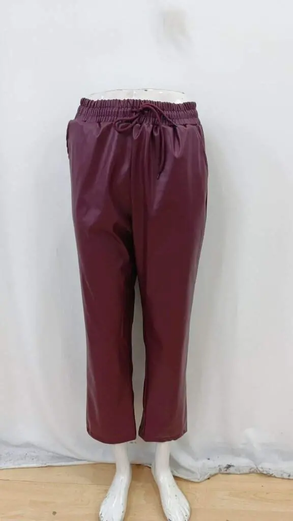 Rahat kesim, yüksek bel, suni deri, bağcıklı, kadın pantolon, deri pantolon, yüksek bel pantolon, bağcıklı pantolon, suni deri pantolon, kadın giyim