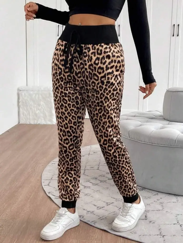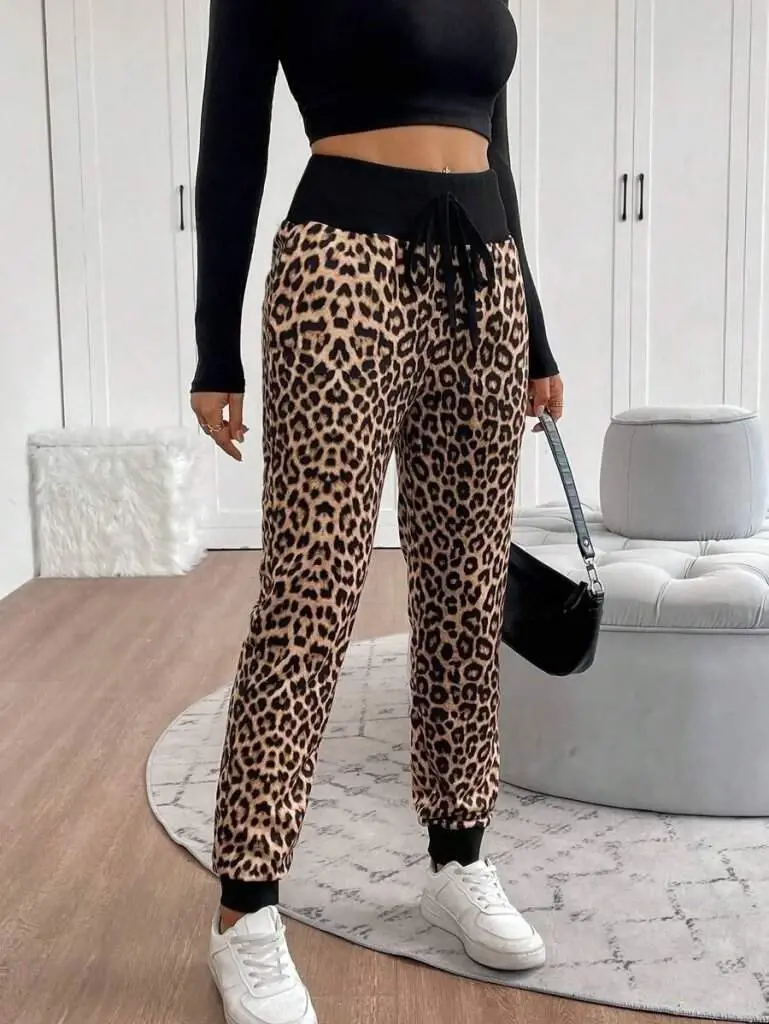 Kadın Yüksek Bel Bağcıklı Desenli Iki Iplik PantolonModelin Ölçüleri: Boy: 165, Kg: 55, Göğüs: 90, Bel: 72, Kalça: 100Modelin üzerindeki ürün M/38 bedendirDESEN-Hayvan Baskılı/Leopar DesenBEL OZELLIK-Yüksek BelEK OZELLIKLER-Boş/Ek özellik YokKALIP-DigerKAPATMA TURU-DigerBACAK BOYU-Uzun