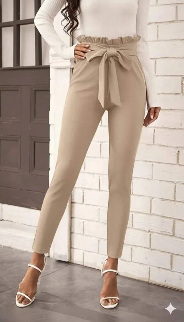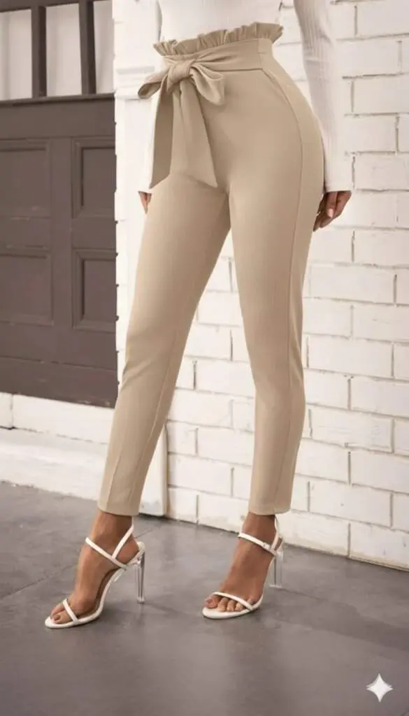 Kadın Yüksek Bel Beli Fırfırlı önden Bağlamalı Ithal Krep Pantolon