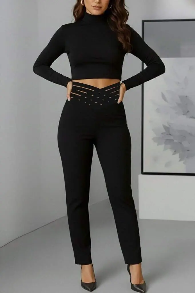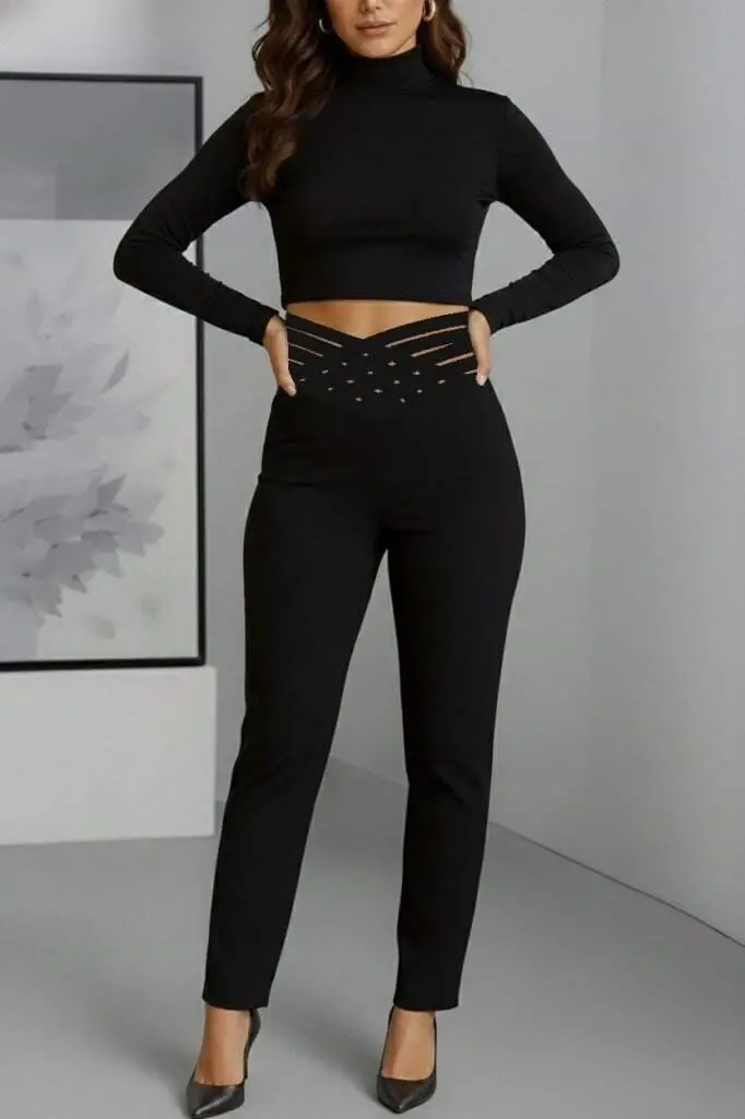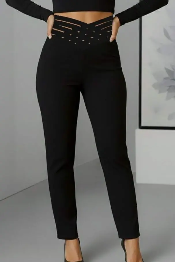 Kadın Yüksek Bel çapraz şerit Detaylı Ithal Krep Pantolon