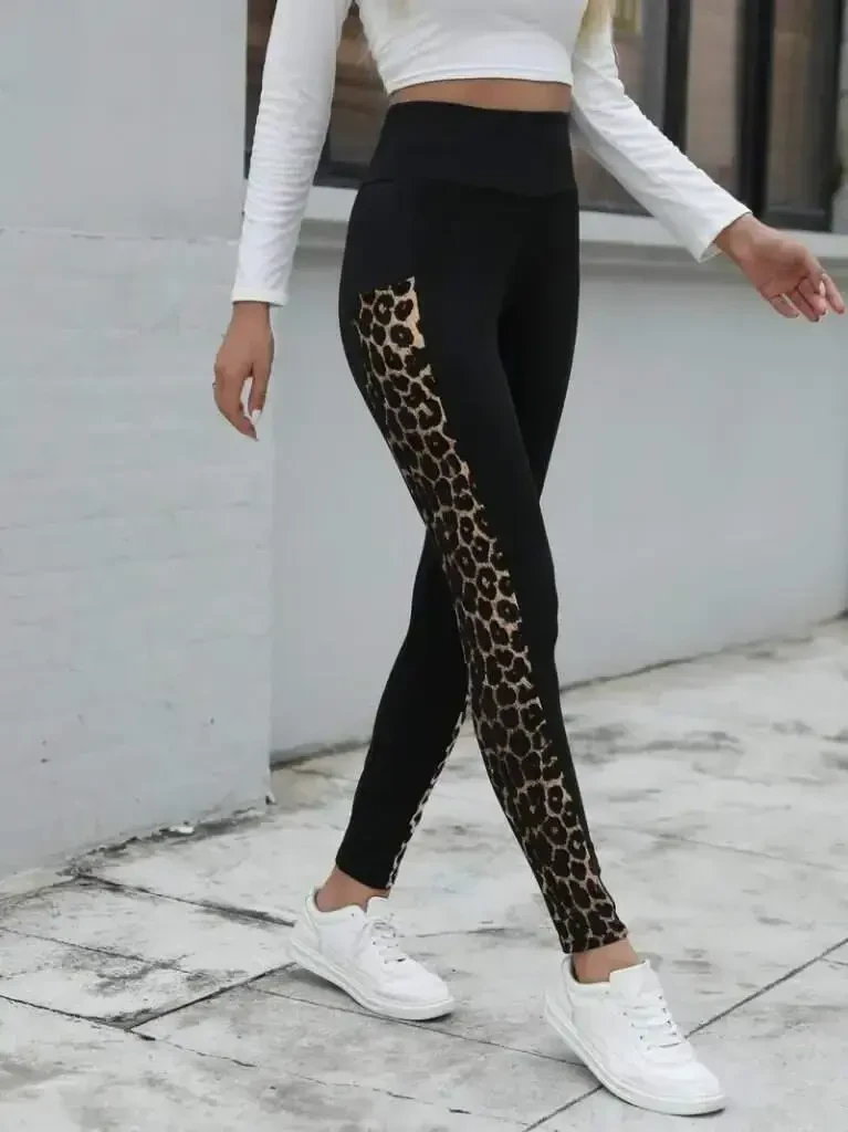 Ayollar tayti, baland belli, leopard naqshli, g'avvos tayti, cho'ntak detallari, sport tayti, kundalik tayti, tortuvchi tayti, trend tayti, ayollar kiyimi