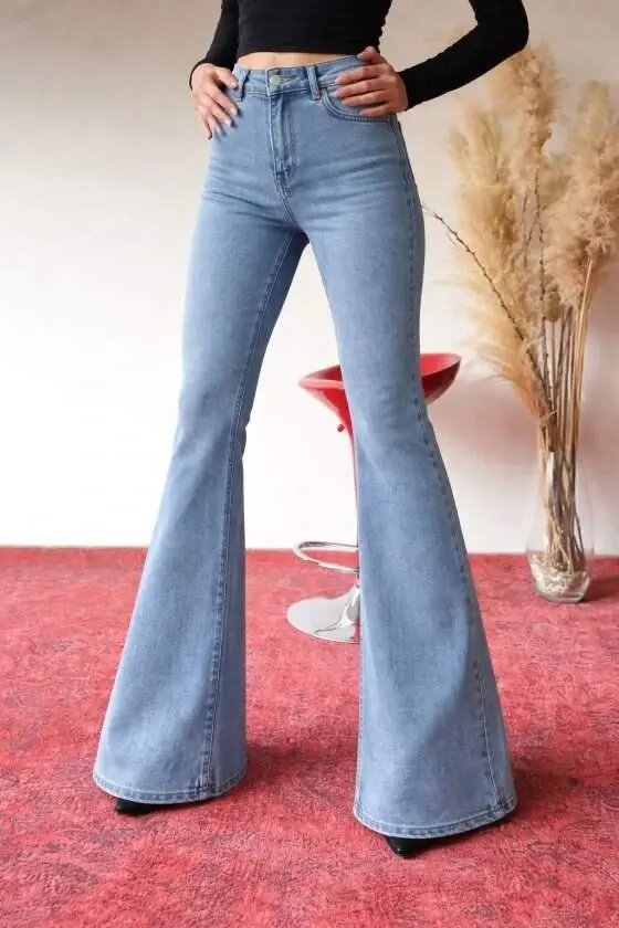 Kadın Yüksek Bel Ispanyol Paça Kot Pantolon