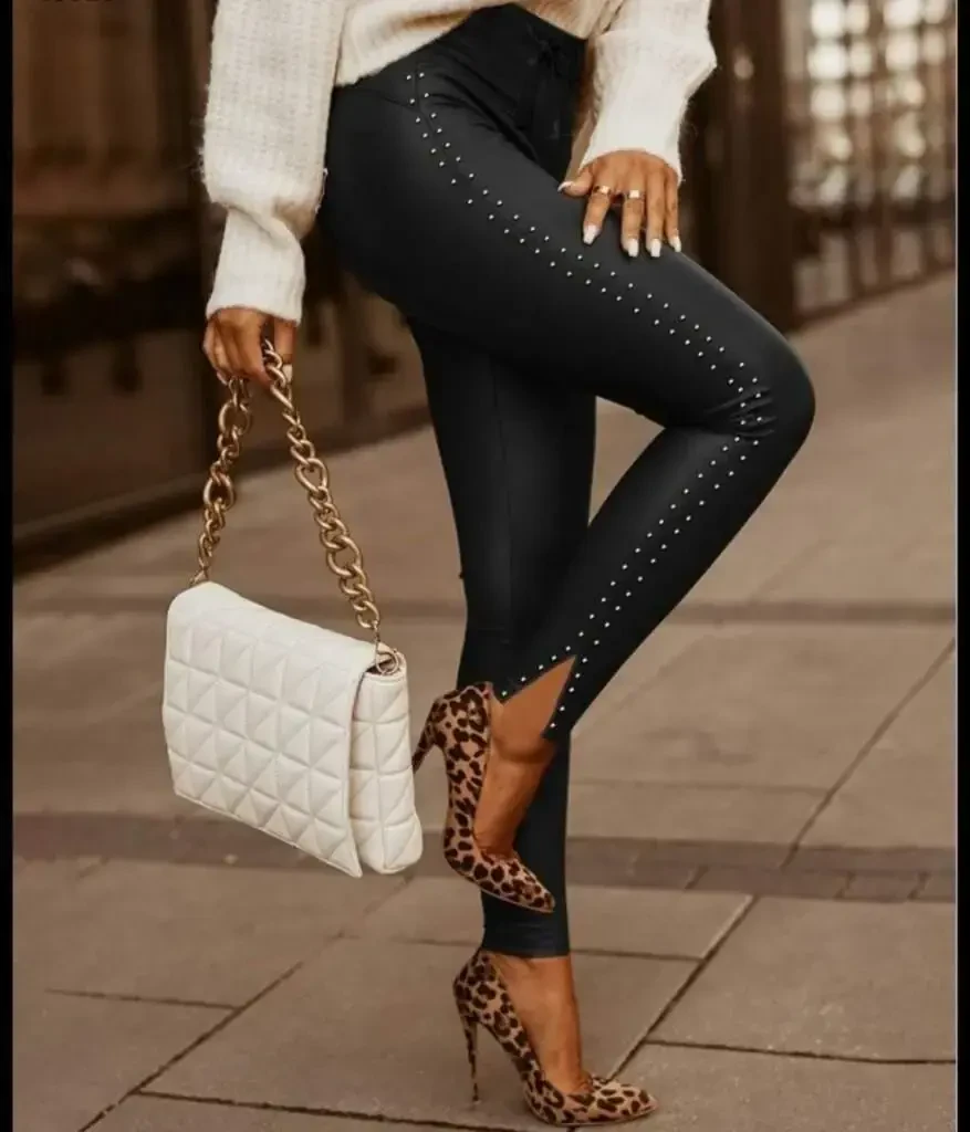 Kadın Yüksek Bel Yanlardan İnci Detaylı Yırtmaçlı Uzun Deri Tayt ile stilinize benzersiz bir dokunuş katın! Bu özel tasarım tayt, hem şıklığı hem de rahatlığı bir araya getirerek gardırobunuzun vazgeçilmezi olmaya aday. Yüksek bel kesimi, vücut hatlarınızı kusursuz bir şekilde vurgularken, yanlardaki inci detaylı yırtmaçlar ise feminen ve modern bir görünüm sunar. Uzun bacak boyu, her türlü ayakkabıyla mükemmel bir uyum sağlayarak, farklı kombinler oluşturmanıza olanak tanır. İster günlük kullanımda, ister özel bir davette, bu deri tayt ile her zaman şık ve özgün görüneceksiniz. Modelin üzerindeki M/38 beden, taytın vücuda oturan ve rahat bir kesime sahip olduğunu gösterir. Bu, hareket özgürlüğünüzü kısıtlamadan, gün boyu konforlu bir kullanım deneyimi sunar. Deri kumaşın kalitesi, uzun ömürlü bir kullanım sağlarken, şık görünümünden ödün vermeden, her ortamda dikkat çekmenizi sağlar. İnci detayları, tayta sofistike bir hava katarken, yırtmaçlar ise modern ve cesur bir stil yaratır. Bu tayt, sadece bir giyim parçası değil, aynı zamanda tarzınızı yansıtan bir ifadedir. Gündüz spor şık bir görünüm için basic bir tişört ve spor ayakkabılarla kombinleyebilir, gece ise şık bir bluz ve topuklu ayakkabılarla tamamlayarak etkileyici bir stil yaratabilirsiniz. Kadın Yüksek Bel Yanlardan İnci Detaylı Yırtmaçlı Uzun Deri Tayt, her kadının gardırobunda olması gereken, çok yönlü ve şık bir parçadır. Bu tayt ile her zaman kendinize güvenli ve şık hissedeceksiniz. Ürünün yüksek kaliteli malzemesi ve dikkatli işçiliği, uzun süreli kullanım ve memnuniyet garantisi sunar. Tarzınızı yansıtmak ve her ortamda dikkat çekmek için bu özel tasarım deri taytı hemen keşfedin! Bu tayt, sadece bir giyim eşyası değil, aynı zamanda bir moda ifadesidir. Her detayında özenle düşünülmüş olan bu tasarım, stilinizi bir üst seviyeye taşıyacak ve sizi her zaman özel hissettirecektir. Unutmayın, moda sadece giymek değil, aynı zamanda kendinizi ifade etme biçimidir. Bu deri tayt ile tarzınızı özgürce ifade edin ve her zaman şık kalın.