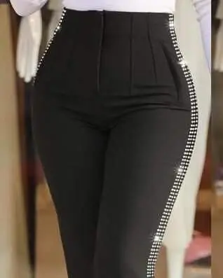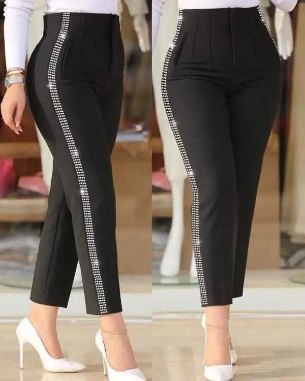 Kadın Yüksek Bel Yanlardan Taş Detaylı Ithal Krep Pantolon