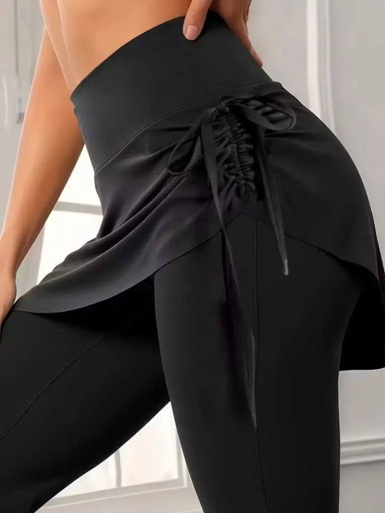 Kadın Yüksek Belli Yandan Büzgülü Paçaya Doğru Geniş Dalgıç Tayt