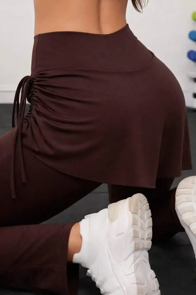 Kadın Yüksek Belli Yandan Büzgülü Paçaya Doğru Geniş Dalgıç Tayt